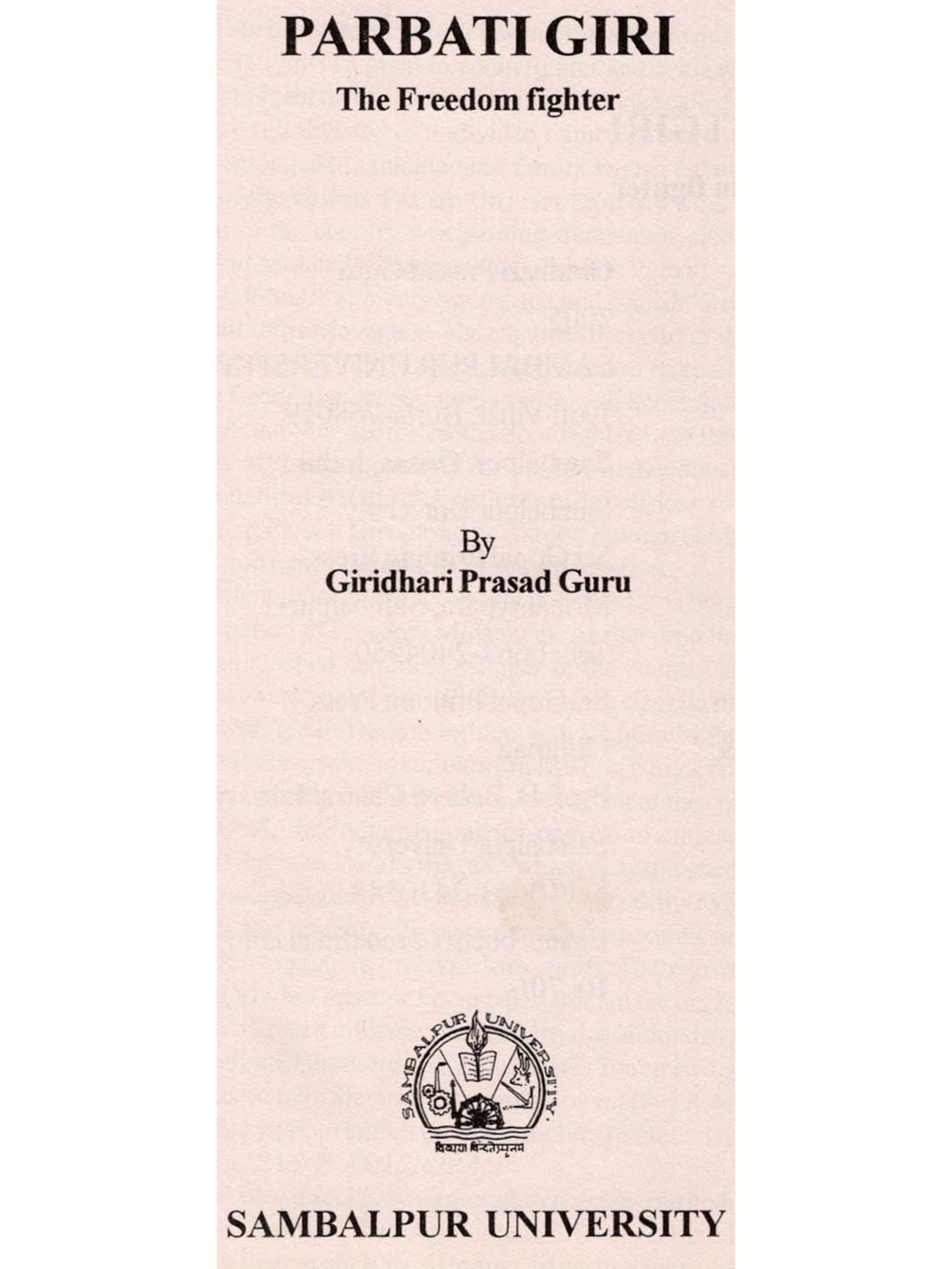 Sambalpur University has always given great importance to immor-tal souls of Western Orissa. This book on Late Parbati Giri is a humble effort in this direction. I take this opportunity to thank Prof. G.P. Guru for writing the biography of this illustrious daughter of Orissa. I hope, the students of Sambalpur University will draw inspiration from the multi-dimensional activi-ties of this great patriot and devote themselves for nation building.