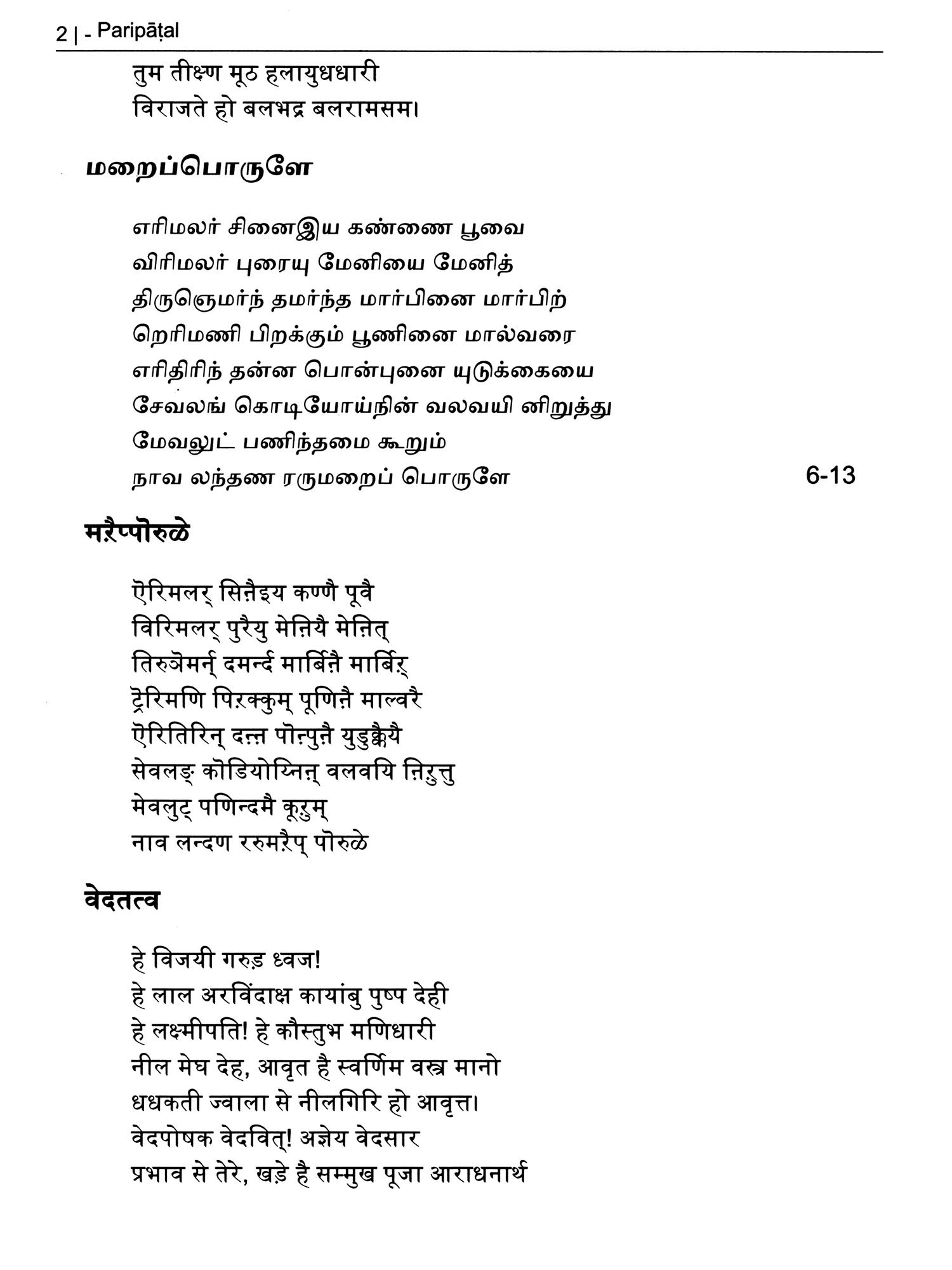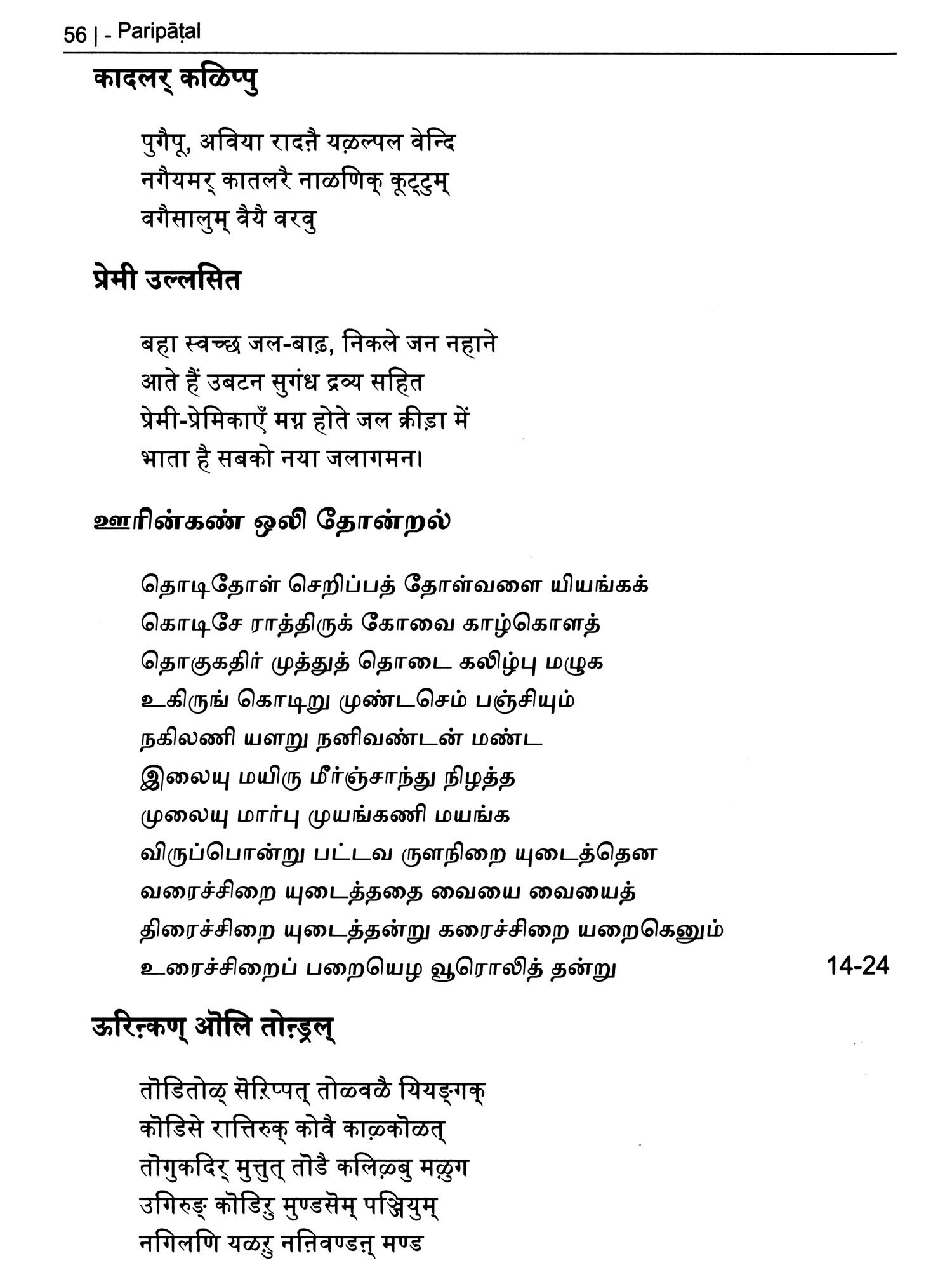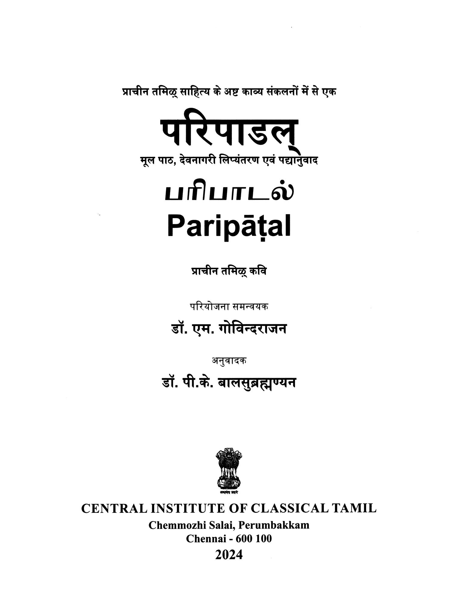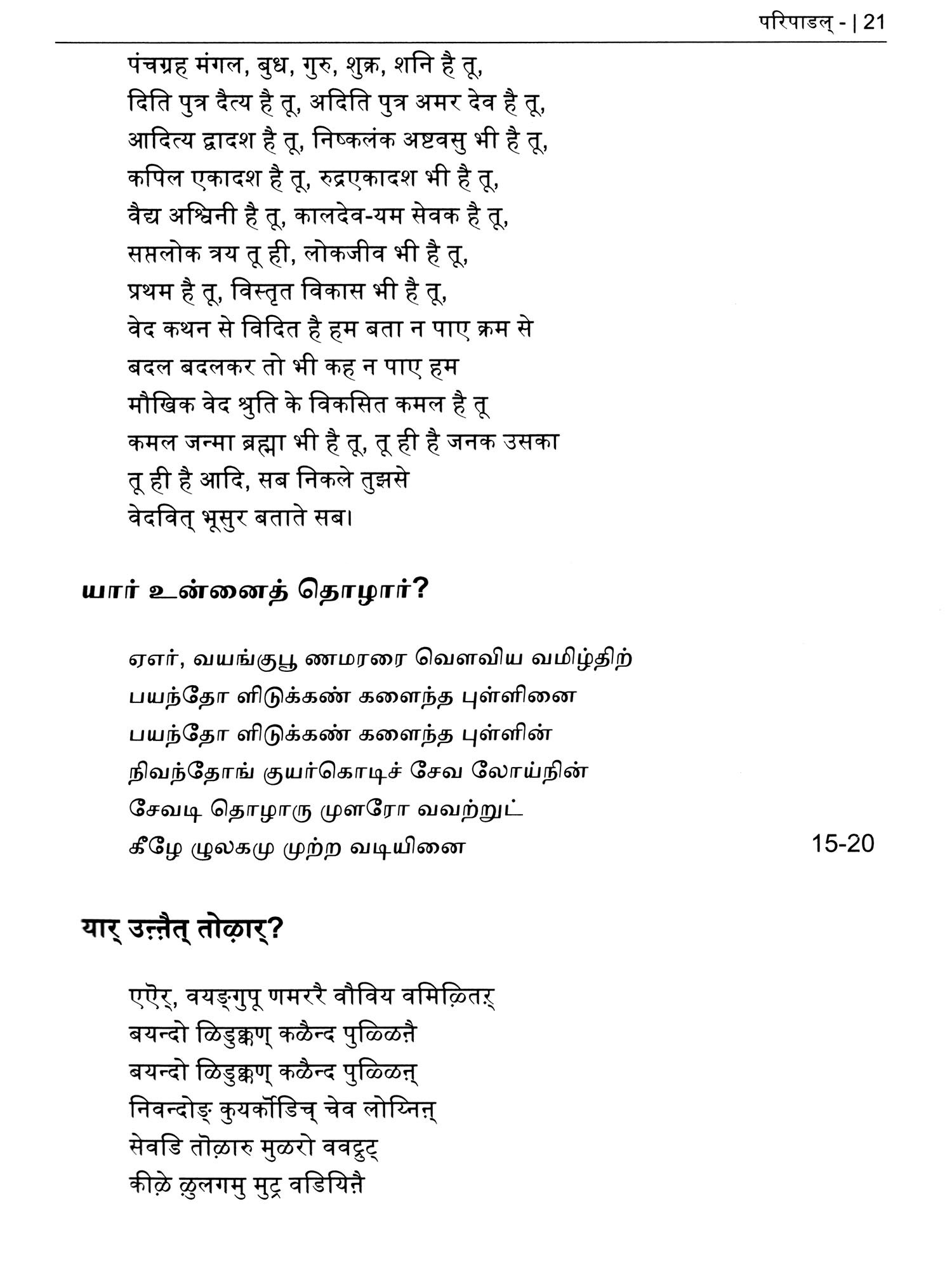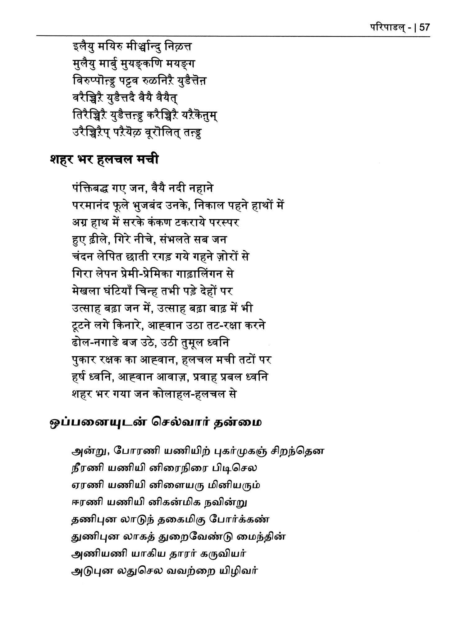 परिपाडल् (பரிபாடல்)- Paripatal: Ancient Tamil Poet (Original Text, Devanagari Transliteration and Verse Translation)