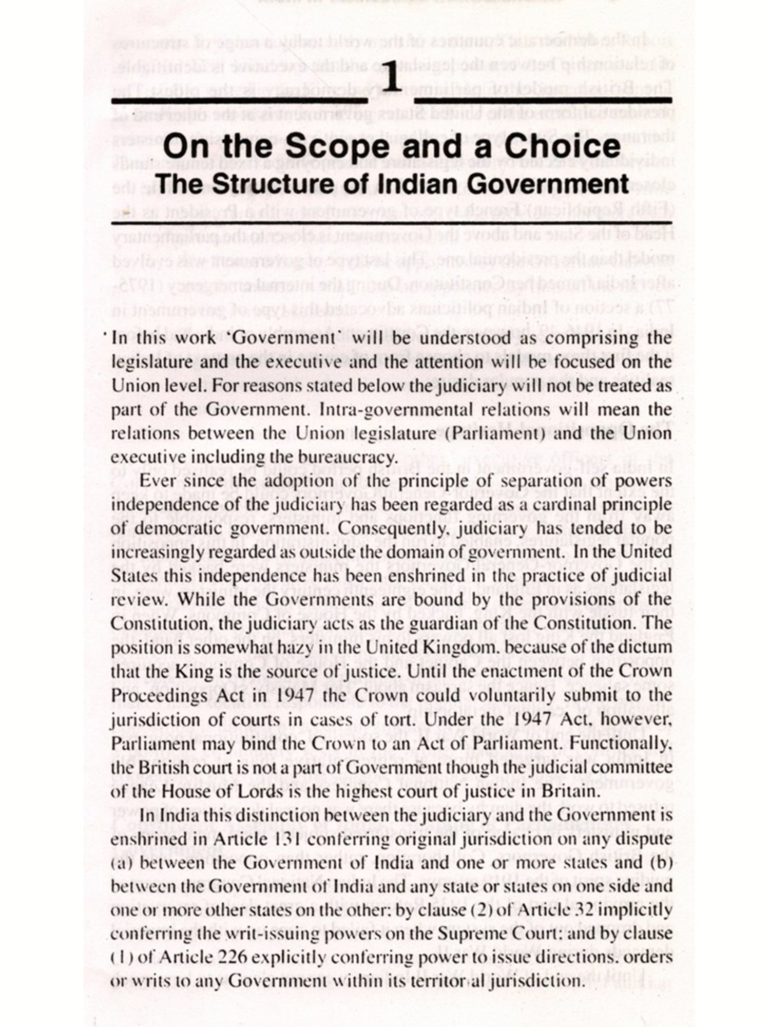 The following pages contain the result of research under a fellowship awarded by the Honourable Speaker of the Lok Sabha in July 2000 on intra-governmental relations in India. Before granting the fellowship the Fellowship Committee advised me to redesign the project in a manner that Parliament finds its due place in various aspects proposed to be dealt with in the project.