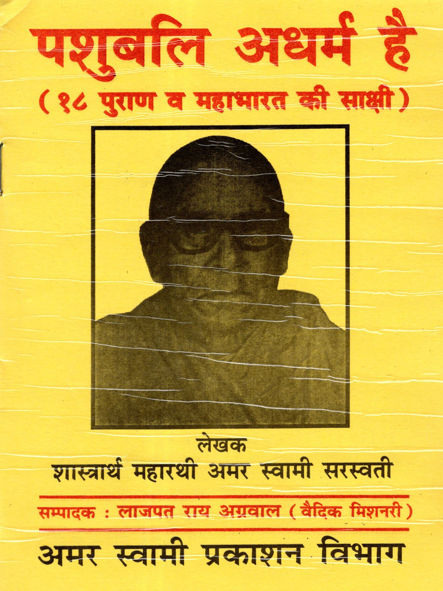 पशुबलि अधर्म है (१८ पुराण व महाभारत की साक्षी): Pashu Bali Adharm Hai (Witnessed by 18 Puranas and Mahabharata)