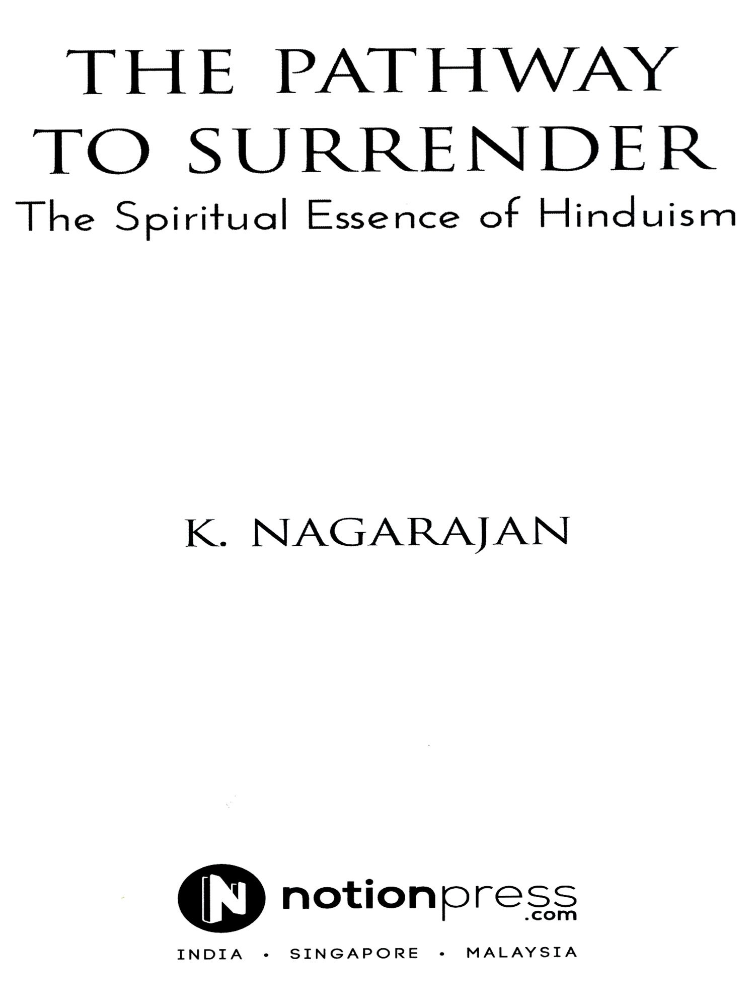 Dr. K. Nagarajan, Ph.D., is a passionate scholar and devoted seeker with a deep reverence for Hindu spiritual traditions. A voracious reader of sacred texts and the teachings of enlightened masters he draws from India's vast reservoir of spiritual wisdom to offer timeless insights for modern readers. His earlier work, Indian Ethos and Values for Leadership Excellence, published by New Age International (P) Limited, New Delhi, was widely acclaimed by both academic circles and general readers interested in India's ancient wisdom. In The Pathway to Surrender, Dr. Nagarajan presents a profound yet accessible volume that unveils the hidden treasures of Hindu thought and the utterances of realized souls. This work is destined to become a lifelong companion for earnest seekers, illuminating the timeless journey of the soul toward divine union.