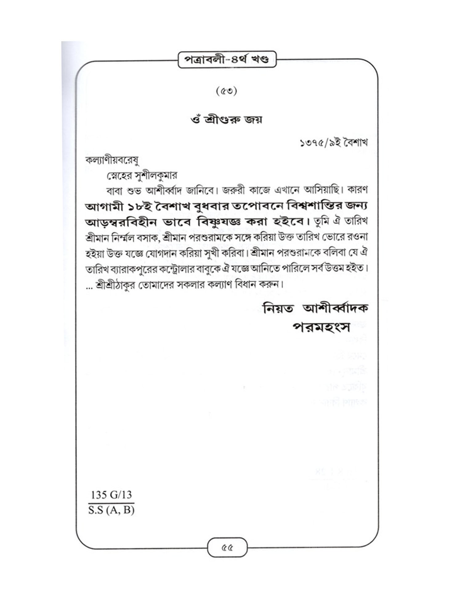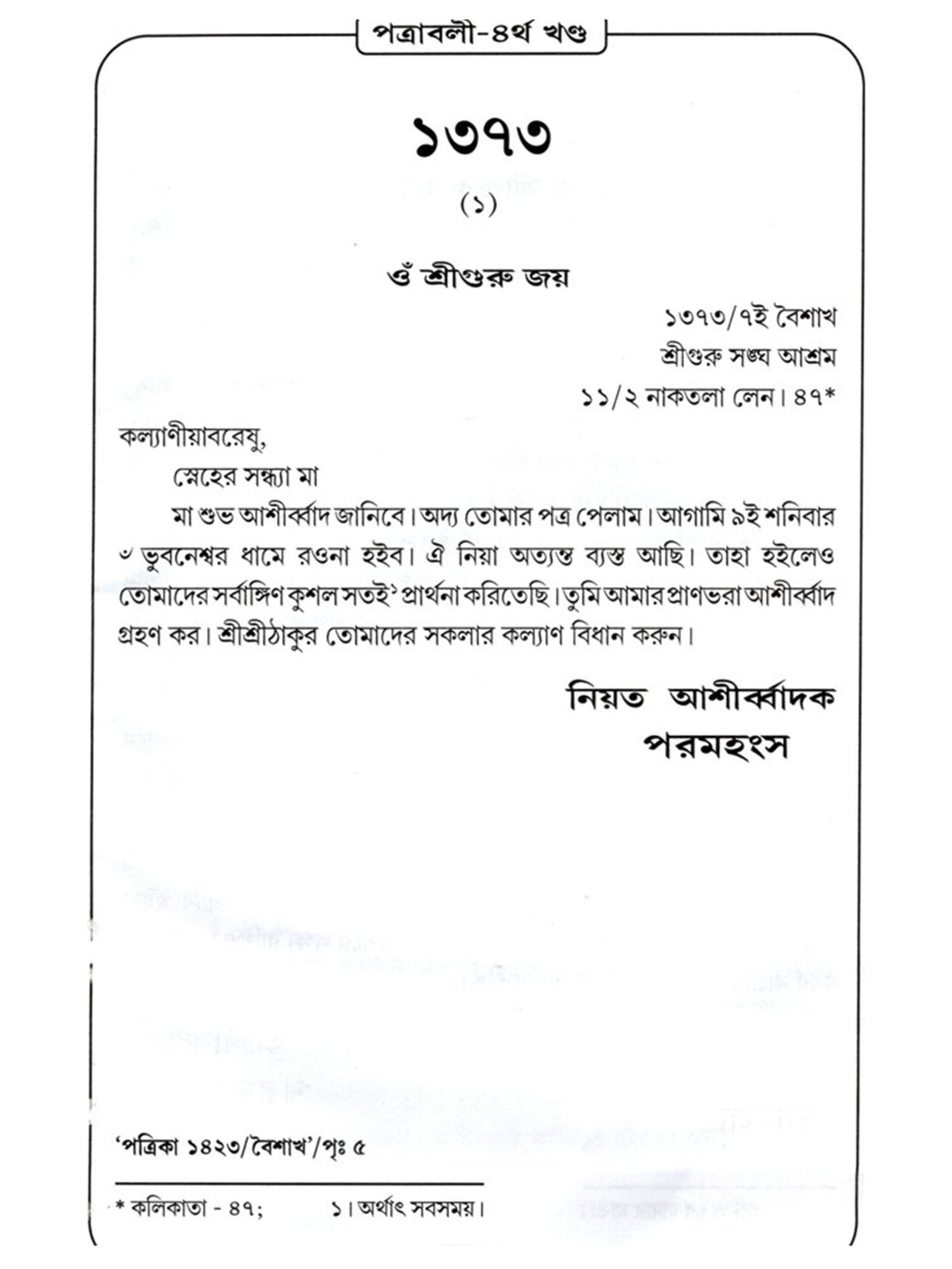 পত্রাবলী: Patrawali - Paribrajakacharyavar Sri Srimad Durgaprasanna Paramahansadeva (Vol-5 in Bengali)