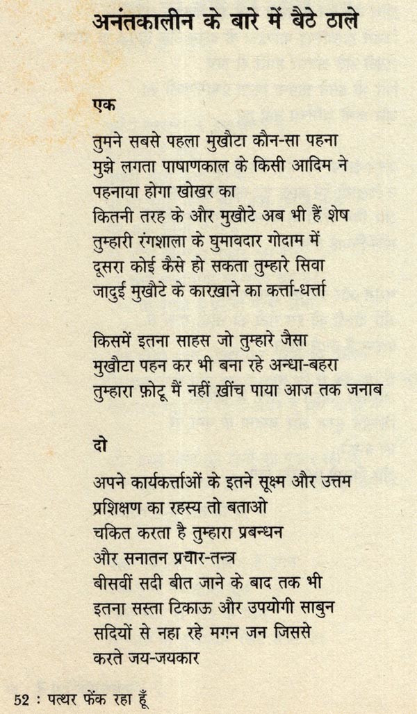 पत्थर फेंक रहा हूँ: Patthar Fenk Raha Hoon- Work Awarded with Sahitya Akademi Award-2012 (Poetry Collection)