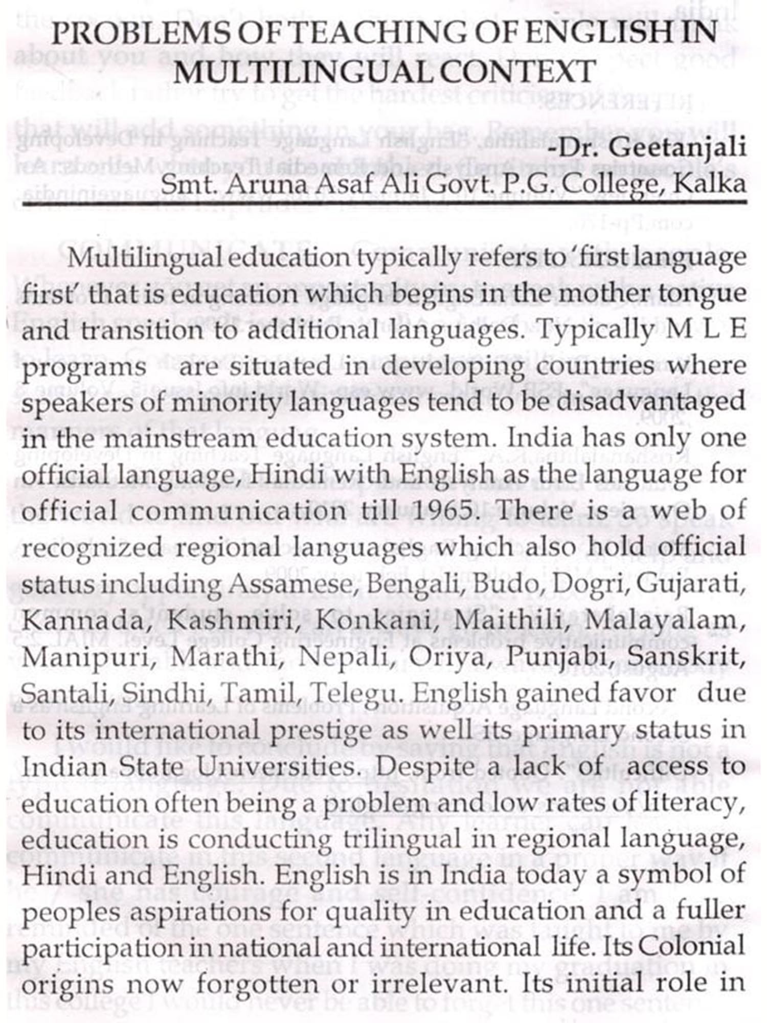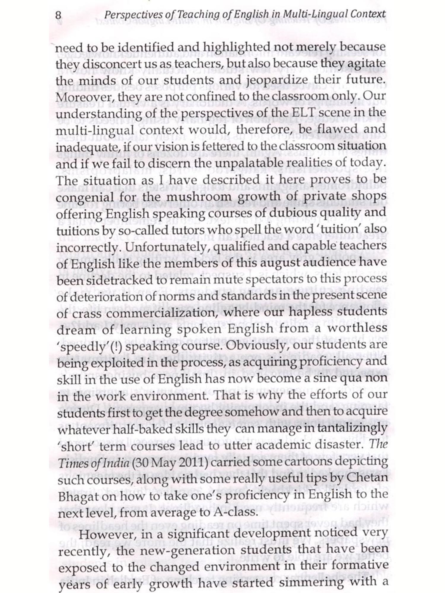 Communication Purposes of English Language- Teaching in Indian Perspective