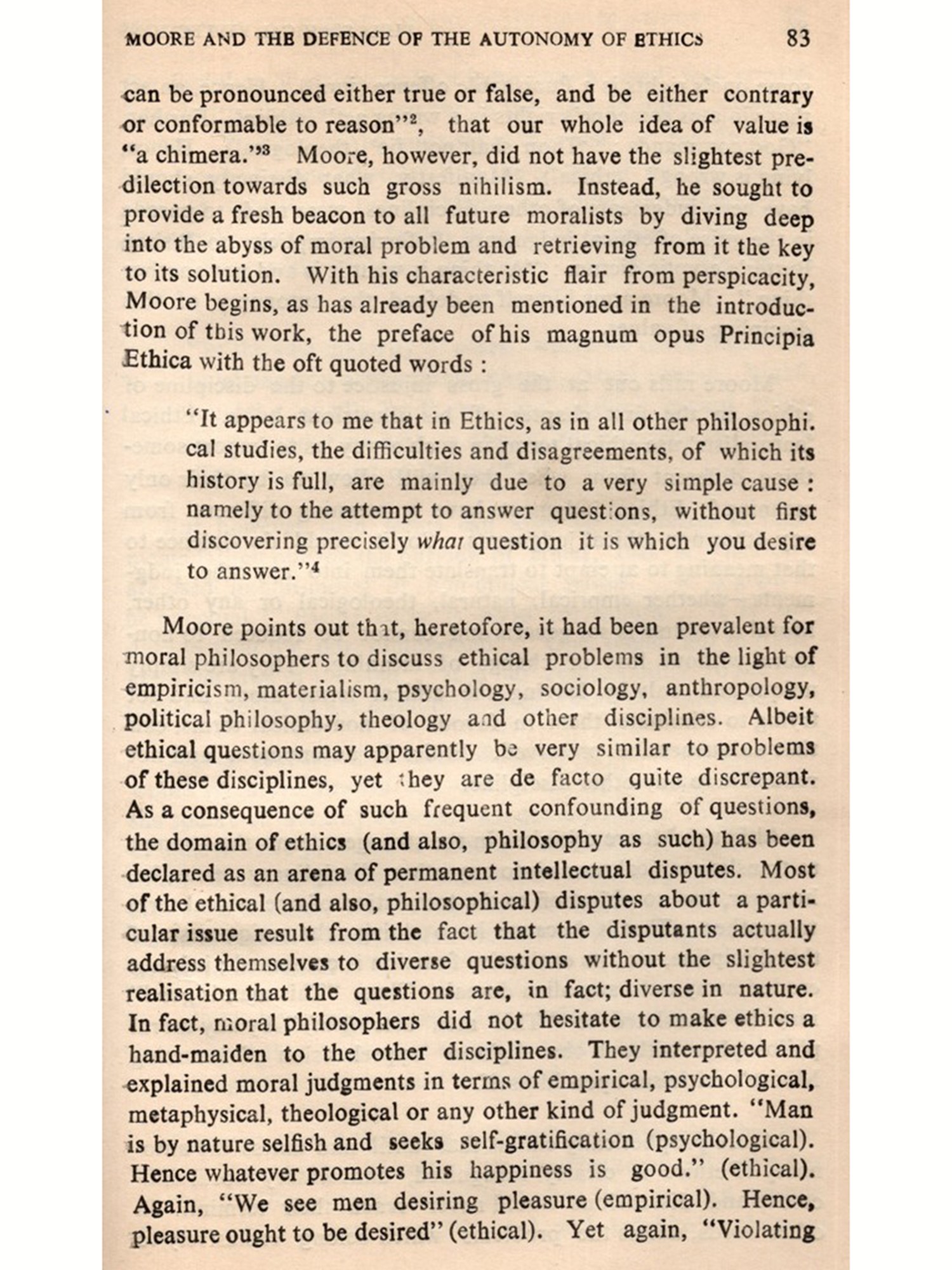 Since philosophy, specially moral philosophy is a much a practical enterprise as a theoretical one, three chapters related to metarthics or logical (theoretical) analysis of moral (Practical) concepts or terms have been incorporated in this collection.
