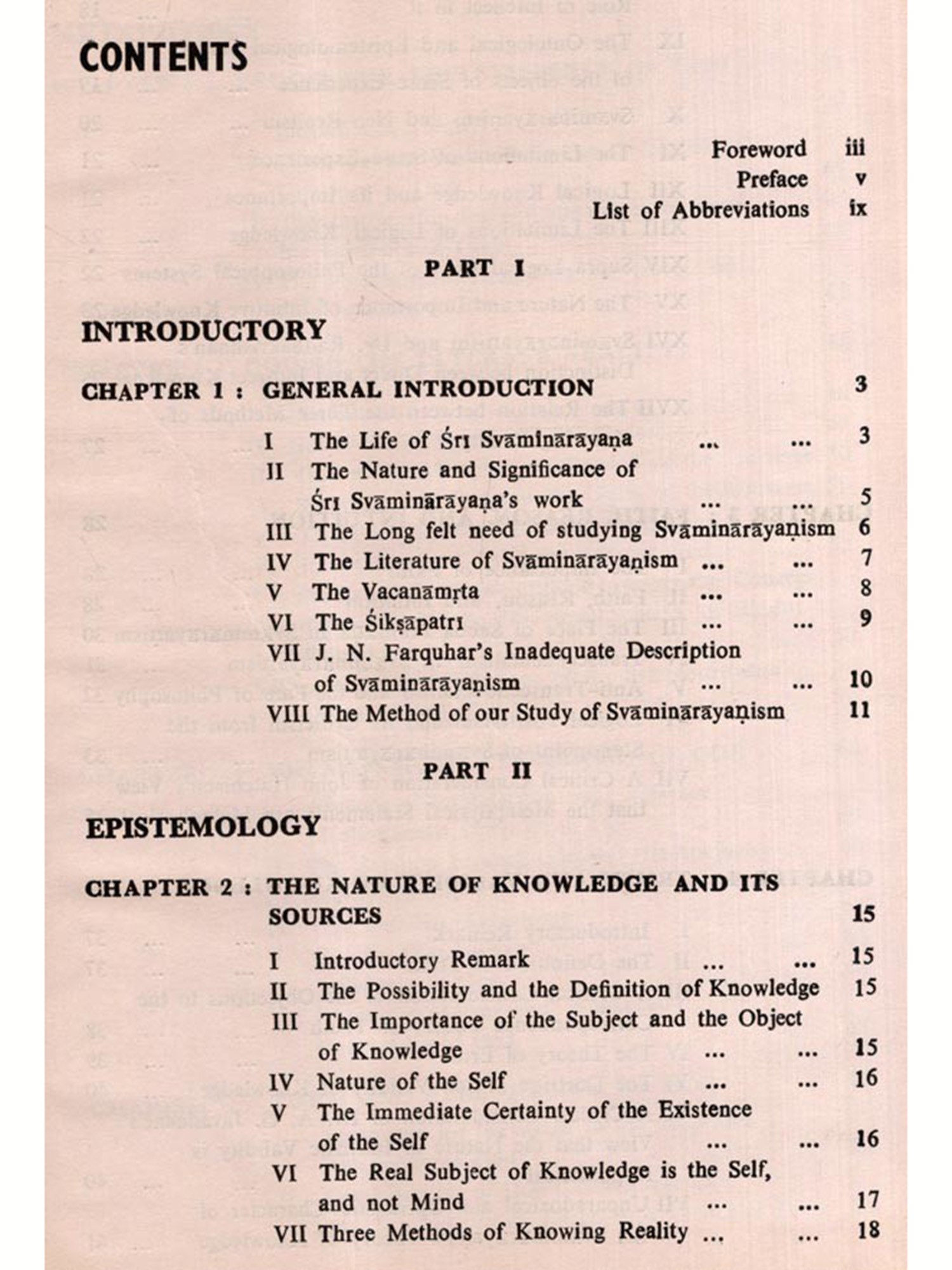 In the present work I have undertaken to make a comprehensive and critical survey of the philosophy of Sri Svaminarayana, the founder of the Svaminarayana Sect. By 'critical' I primarily mean 'rational'. Thus, I have humbly attempted to grasp systematically the philosophical principles of Srı Svaminarayana and to give them as rational a foundation as lies with-in my critical abilities. Every philosophical system has something valuable to offer and it is the prime duty of a sympathetic student of that system to bring this out, It is this constructive approach to Svaminarayanism that has motivated my study.