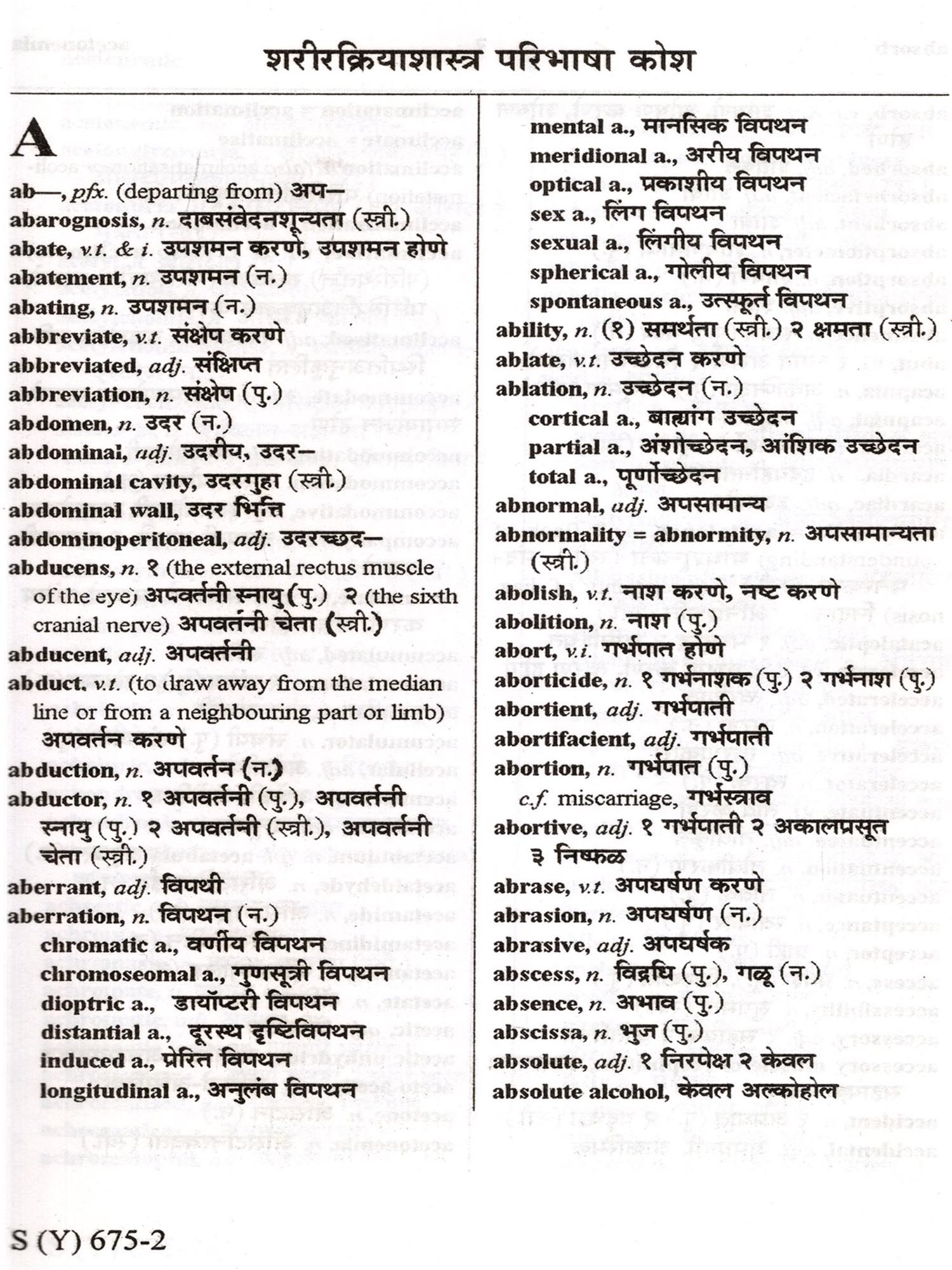 शरीरक्रियाशास्त्र परिभाषा कोश- Physiology Definition Dictionary (Hindi and English)