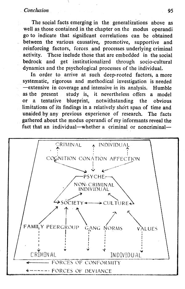 The book includes an extensive and fascina ting review of classic literature pertaining to pickpocketing. Using the almost obsolete technique of participant observation, the author offers an in-depth analysis of the subject against the backdrop of Sagar town endorsing the study with numerous tables, figures, maps and photographs. Perhaps one of the most interesting aspects of the book is an overview of tools, techniques and argot of pickpocketing. Astonishing is the revelation that contrary to popular belief, the methods employed by the pickpockets in tackling their victims are in no way unscien tific or haphazard. Last but not the least, the fact that makes this study a truly pioneering one is an investigation of the causes for people turning to this profession. The conclusion of the author on this point can be aptly summed up thus: Society prepares the crime, the criminal commits it.
