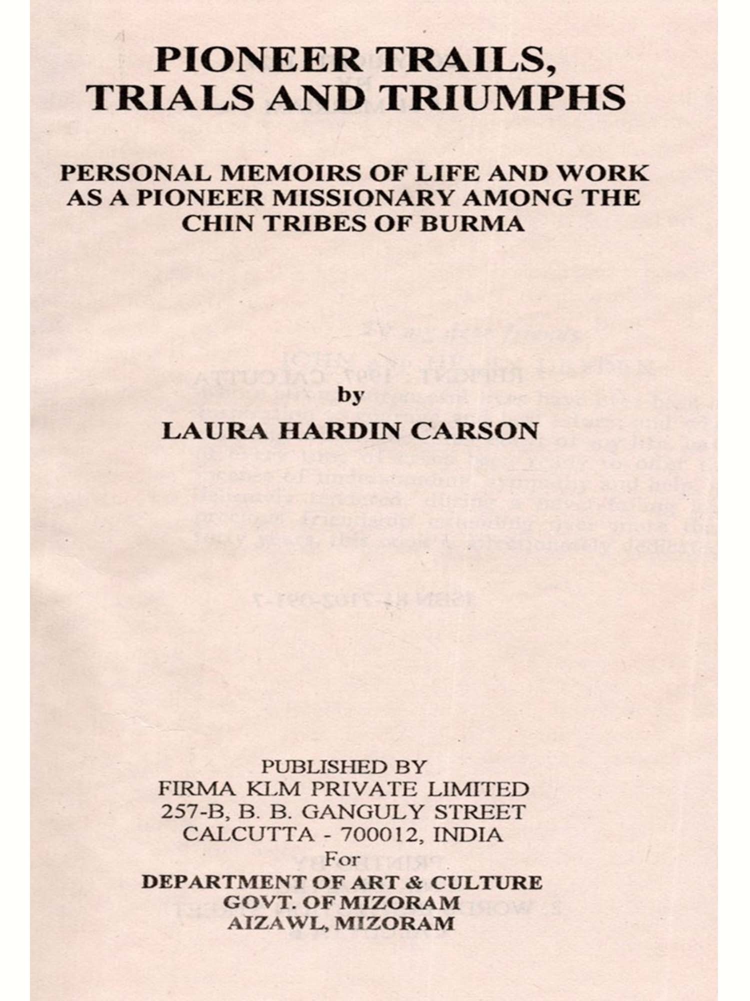 The long and dangerous journey to Haka, the difficulties of transporting to that remote and almost inaccessible fastness in the mountains, the necessary house-hold goods and supplies for a year, the curiosity and inquisitiveness of the natives about seeing for the first time a white woman, the long efforts to overcome the suspicions and prejudices of uncivilized and savage tribes, and to acquire their strange unwritten languages under those conditions, are all depicted in this book with graphic vividness.