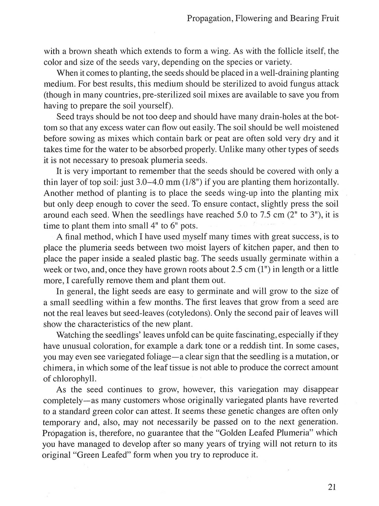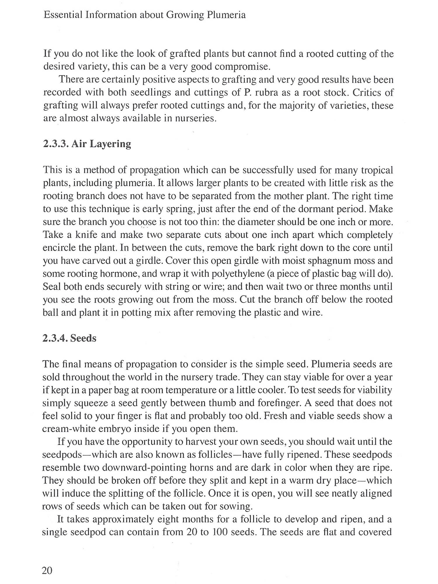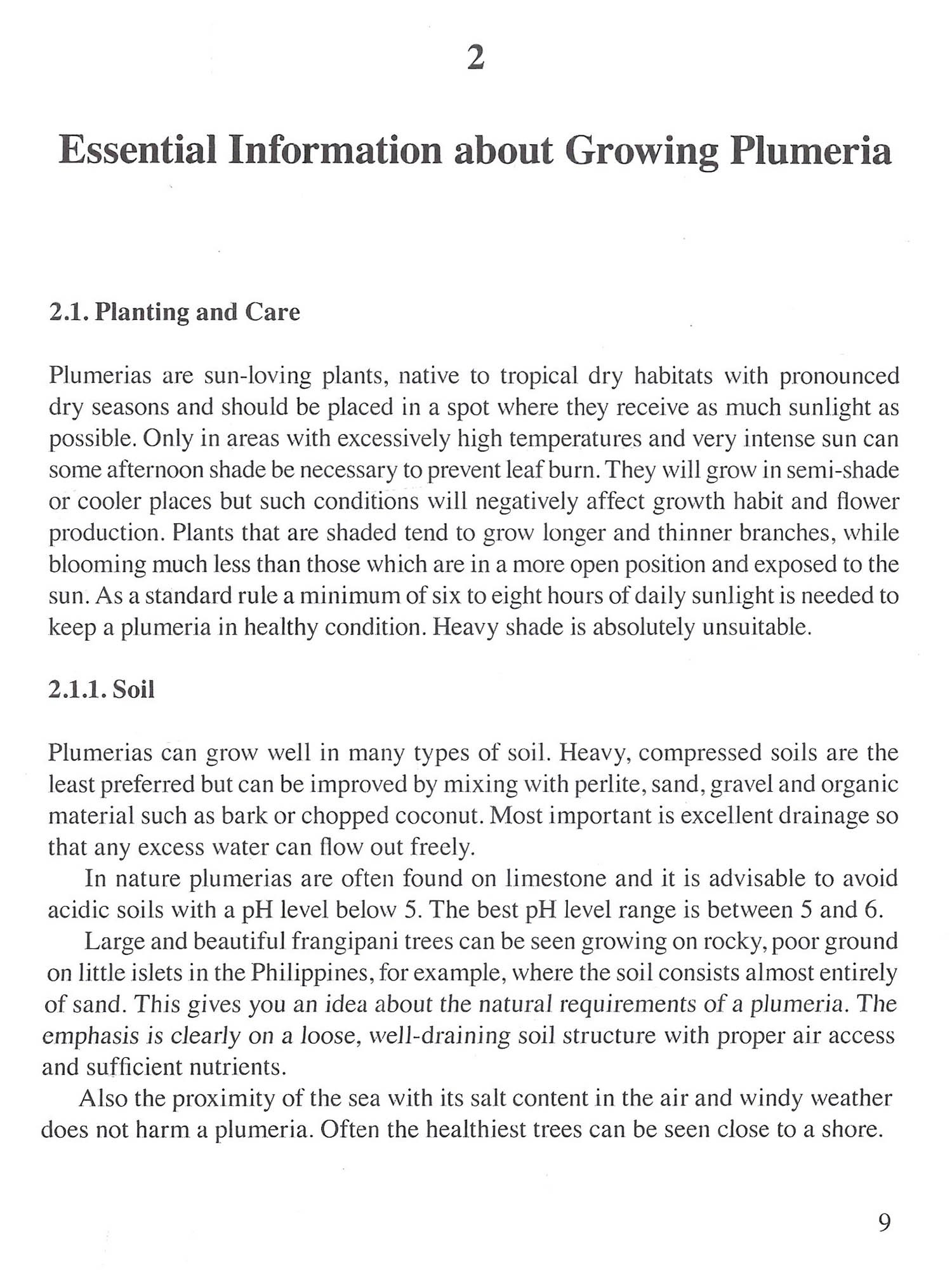 The plumeria, commonly known as the frangipani or temple tree, was originally spelled plumiera in honor of the man who discovered it, the Frenchman Charles Plumier (1648-1706). Plumier was Royal Botanist to Louis XIV and a keen plant collector. He was the first to describe the new genus after discovering it during his plant-collecting expeditions in the Caribbean in the 1690s. Plumeria is a smaller genus within the much larger Apocynaceae family (or Dogbane family in English) and comprises just seven distinct species-according to the American botanist Woodson's 1938 revision of the genus, in the Annals of the Missouri Botanical Garden. Woodson, it must be noted, did not have the opportunity to conduct field studies on living plants: the bulk of his work was conducted in the lab using dried specimens collected from various US-based herbaria of his time. It is possible, therefore, that there are more than seven species of plumeria, but further study is necessary to determine what should be classified as a distinct species and what can stay as a subspecies. Some scientifically oriented sources list as many as 17 distinct species; other sources list as few as three. Matters are further complicated by the many dif-ferent synonyms which are used to describe the same plant. The non-specialist approaching the subject for the first time is bound to be confused. Consequently, this book will deal only briefly with the complex topic of plumeria species clas-sification, and will focus instead on a selected group of six species which have some horticultural value Introduction Much more data-derived from extensive study of living plants must be gathered on plumeria before consensus can be reached on a decision on the exact number of species. Clearly, the whole genus is in need of a thorough revision. To put plumerias in perspective, it is worth noting that the full Apocynaceae family includes more than 4,500 species today, since the subfamily of Asclepiad oideae, which covers 2,365 species alone, has recently been included. Apart from a few species found in temperate climates most are sub-tropical to tropical plants, such as trees, shrubs, lianas and herbs. Adenium, Allamanda, Beaumontia, Carissa, Catharanthus, Hoya, Pachypodium, Mandevillea, Nerium, Thevetia, Tabernaemontana and Wrightia are perhaps the most well-known and best-loved of these (other than plumerias, of course). All can be found in tropical gardens where they are prized for their distinctive flowers and shapes and for their alluring fragrances. With the exception of Carissa macrocapra and Carissa edulis, or Saba senegalensis for example, few of the many species of Apocynaceae are eaten by animals because of a poisonous sap (milky or non-milky). The poison seems to be particularly strong in species such as Allamanda, Apocynum, Nerium, Pachypodium, Rhazya and Plumeria. The non-milky juice of Acocantherea and Pachypodium is in fact so poisonous it is used by the bushmen of Namibia as a venom for arrows. Because of this toxicity the sap serves as an effective repellent. The sap is present within most of the plant's vessels-stem, leaf and branch-and its chemical composition comprises alkaloids, glycosides and saponins, the latter being readily water-soluble and absorbed through the digestive system. Accordingly, and presumably from bitter experience, animals and even most insects have learned to leave Apocynaceae well alone. Though it is not in the food chain, plumeria does have a place in traditional medicine. In South East Asia, for example, extracts of its bark are used as a remedy for digestive problems or against inflammation; its flowers can help against high blood pressure, cough or fever, and its roots have been used as an ingredient in skin ointments. Other members of the Apocynaceae family are important sources of drugs such as cardiac glycosides, for example, which influence heart function. Quinine (used in the treatment of malaria) is extracted from the soap bark tree (Quillaja saponaria). With the progress in scientific research and in view of the size of the Apocynaceae family the list of such plants with beneficial medicinal properties can only be expected to increase.
