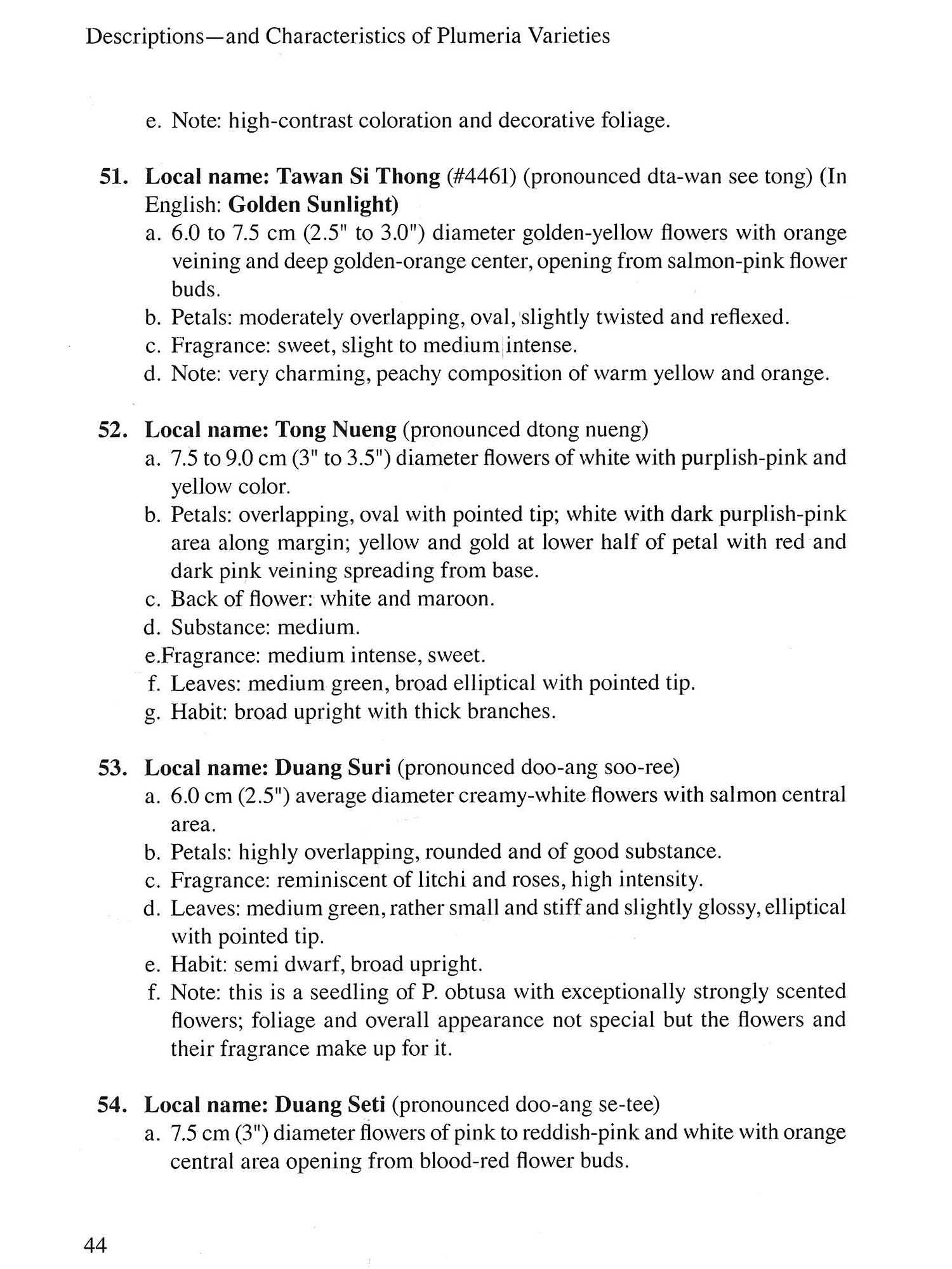 Plumeria in Thailand: A Guide to 235 Varieties lists and illustrates 235 horticul tural varieties and species of mainly Thai origin-many of them never described before. The plumeria or frangipani is a magnificent flowering tropical tree, unrivalled for its exquisite colors and fragrances. Written for the beginner as well as for the specialist it provides practical information on growing, flowering and propagation (air layering, cuttings, grafting and seeds) along with comprehensive botanical data, including Thai names as far as available. Also included useful information on diseases and pest control. This book is intended to serve as a guide to the identification of plumerias, with an emphasis on Thai varieties, while also being informative on other varieties in the USA and other places.