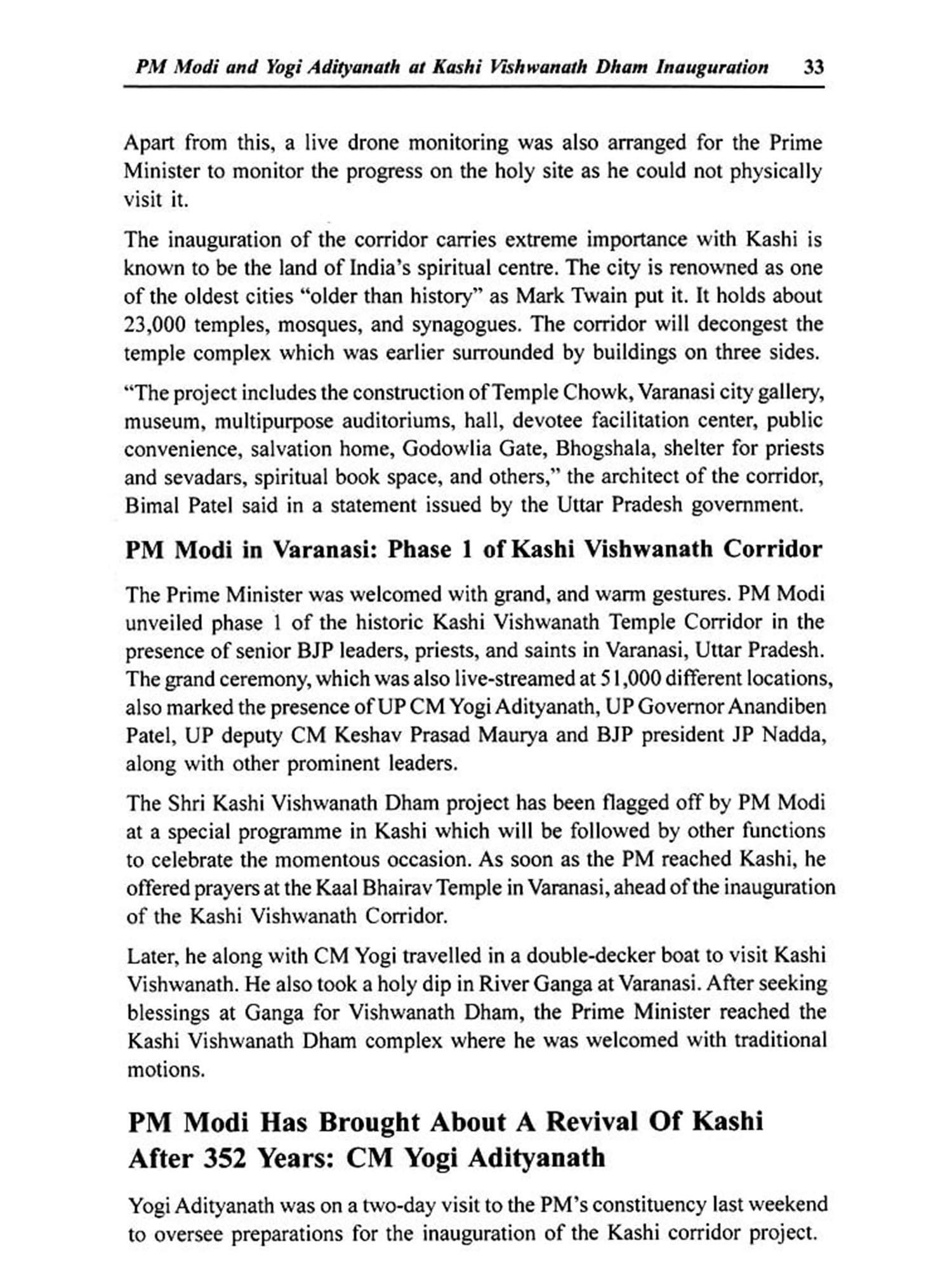 Men who create history are remembered as legendary. Such legendary men are born once in a century. Kashi is witness to such an unprecedented creation of history. Prime Minister (PM) Narendra Modi has achieved what could not be accomplished in a thousand years. He has paved the way for the rejuvenation of Indian pride after a wait of almost 400 years. Kashi Vishwanath Dham is an example of his determination. The glory of Baba Vishwanath, a victim of the cruelty and destruction by the Mughal rulers, has been revived in the form of Kashi Vishwanath Dham.