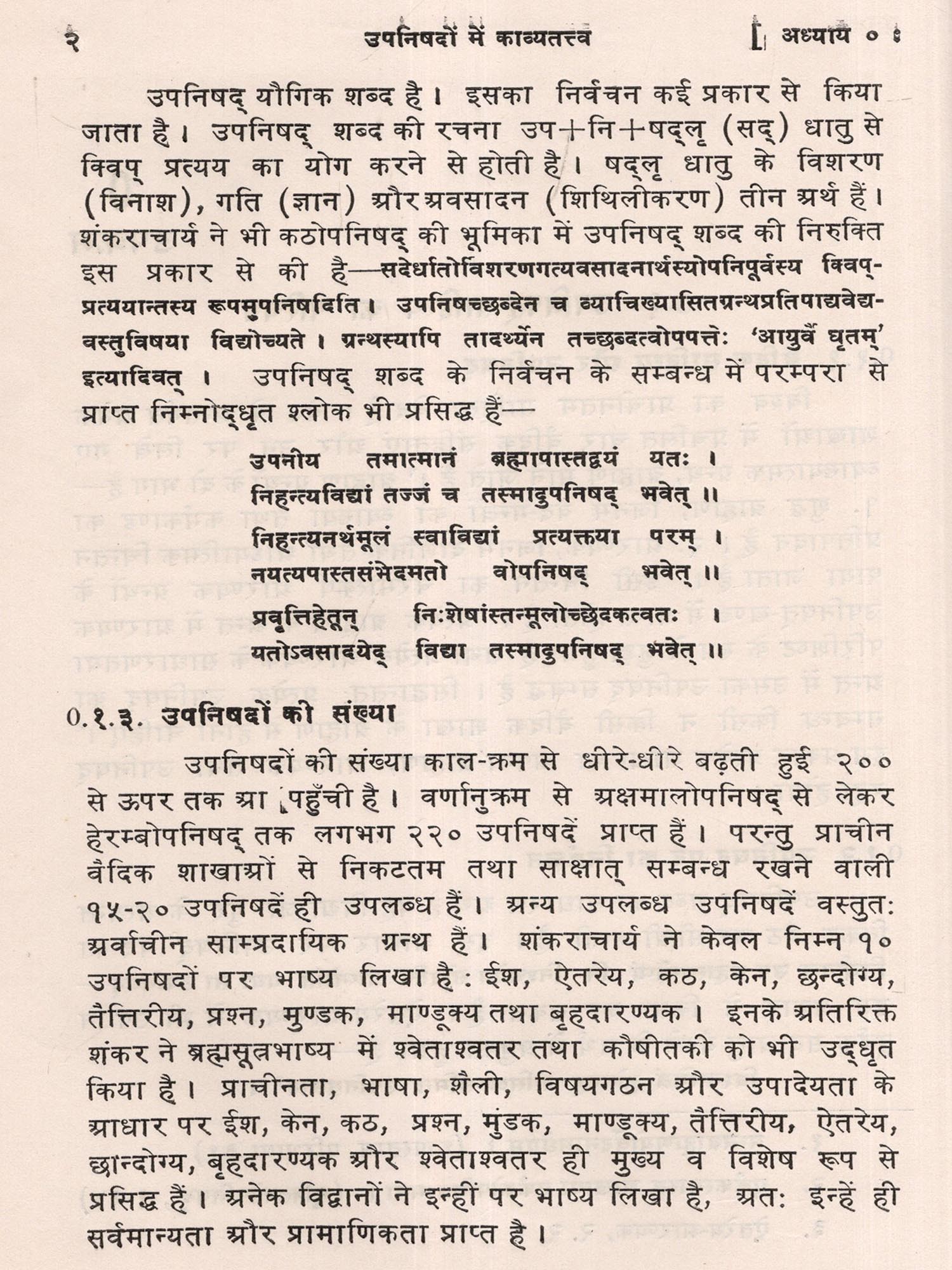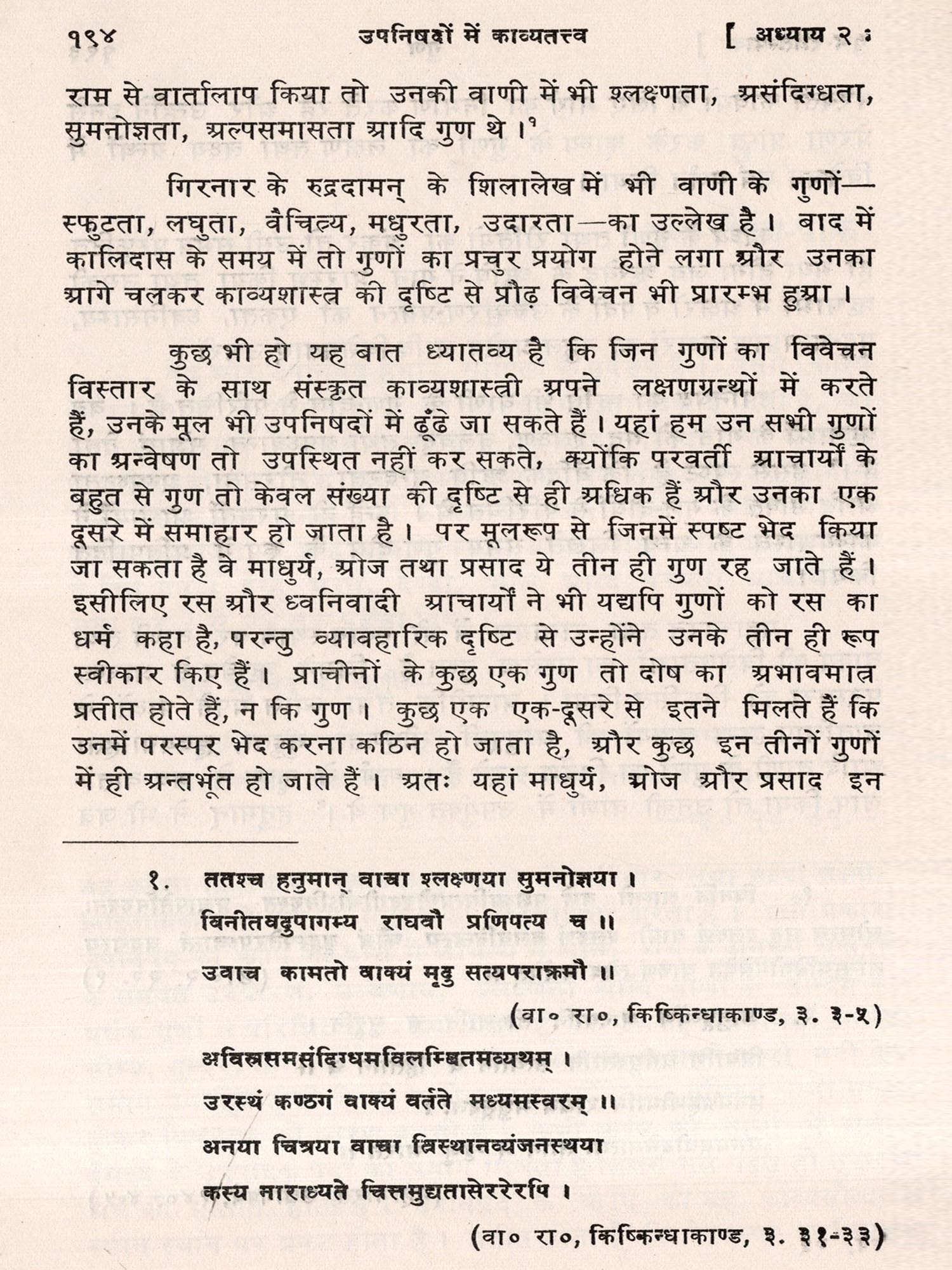In I am glad to write this short Foreword to the study of the poetic elements in the Upanisads offered in the following pages by Dr. K. K. Dhavan. The literary approach to the Vedas which has received much attention in the modern study of Sanskrit literature is, however, not something absolutely new. Brahma is counted as the first Poet, and the Vedas, the first Poetic creations. The Seers of the hymns are also called Kavis and the seeds of the Indian poetic theory can be traced to the Rgveda. the Nirukta, Yaska and, before him, Gargya, considered the words conveying simile and the concept of simile. The Upanisads resort as much to the simile and metaphor, and the Vedanta-Sutras discuss the use of rupaka in the well-known description of the body as the chariot and the soul as the charioteer. Rajasekhara therefore declares that Poetics, which thus holds the key to the understanding of many Vedic passages, is, over and above the accepted six Angas, the seventh Anga of Vedic exegesis.