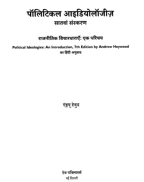 विषय का सबसे सुलभ, संक्षिप्त और फिर भी व्यापक परिचय, यह राजनीतिक विचारधाराओं, राजनीतिक सिद्धांत और परिचयात्मक राजनीति पर पाठ्यक्रम का अध्ययन करने वाले छात्रों के लिए एक अनिवार्य पाठ्यपुस्तक है और उन सभी के लिए एक आवश्यक संसाधन है जो पहली बार राजनीतिक विचारधाराओं को समझना चाहते हैं।