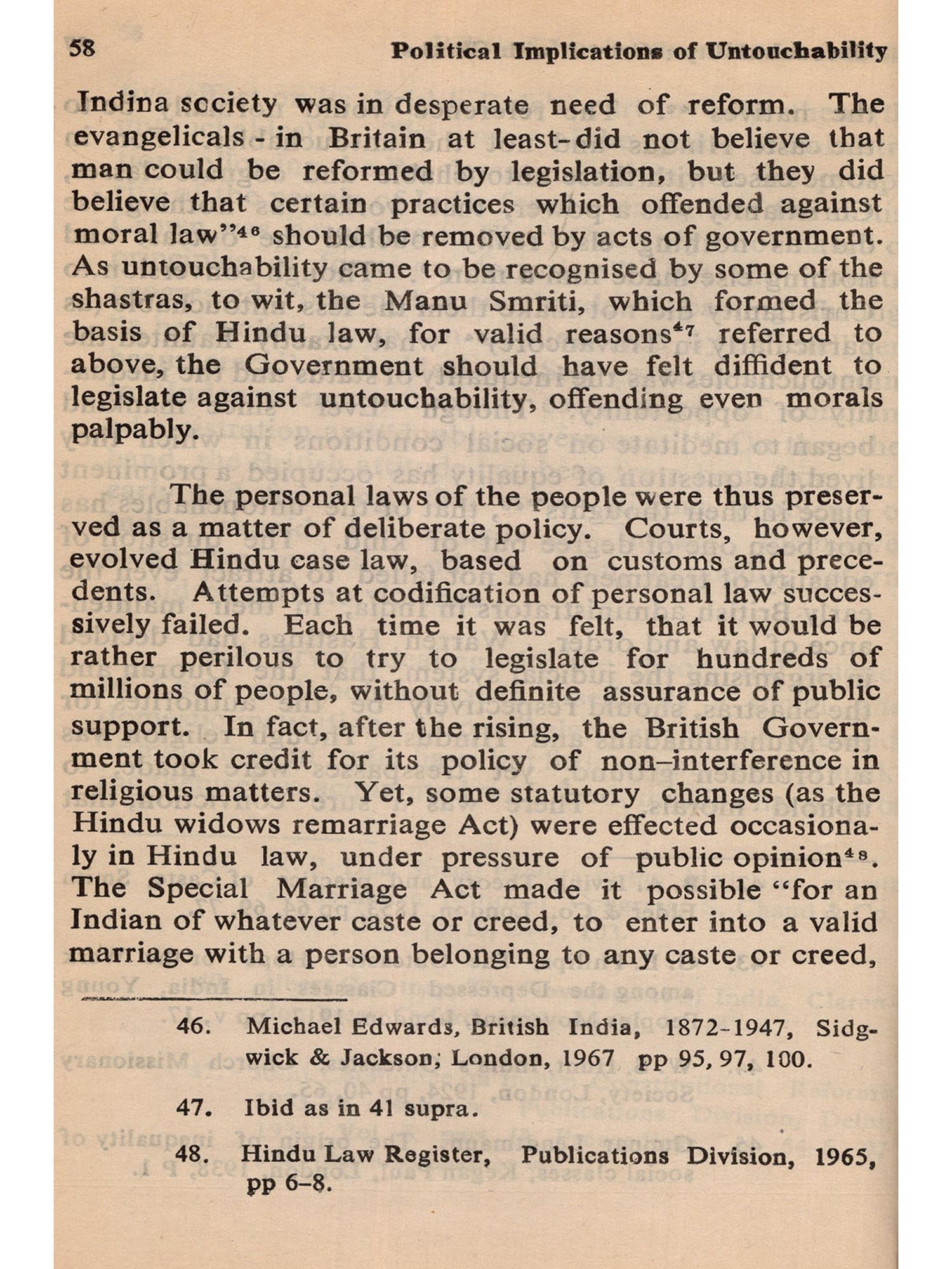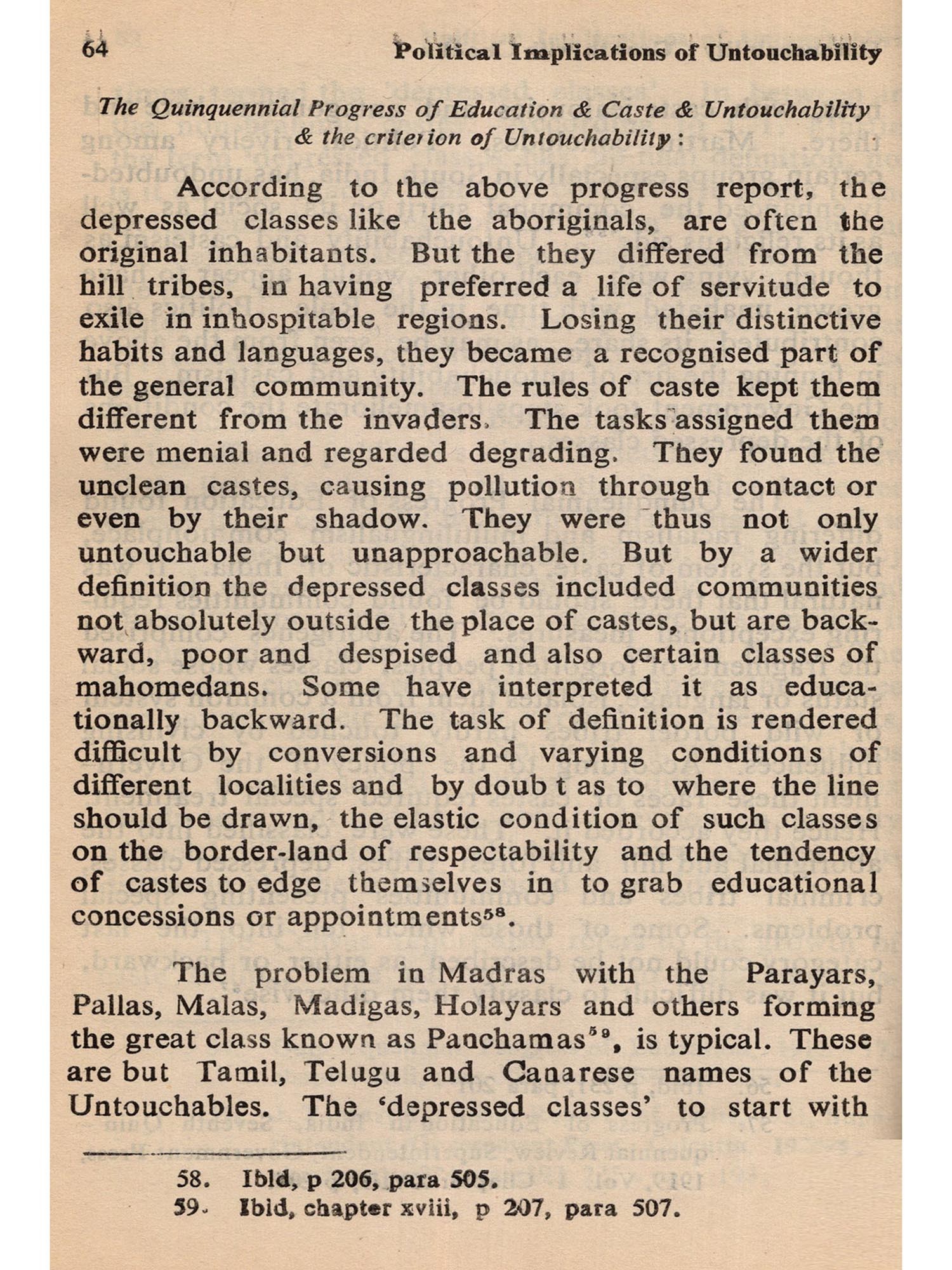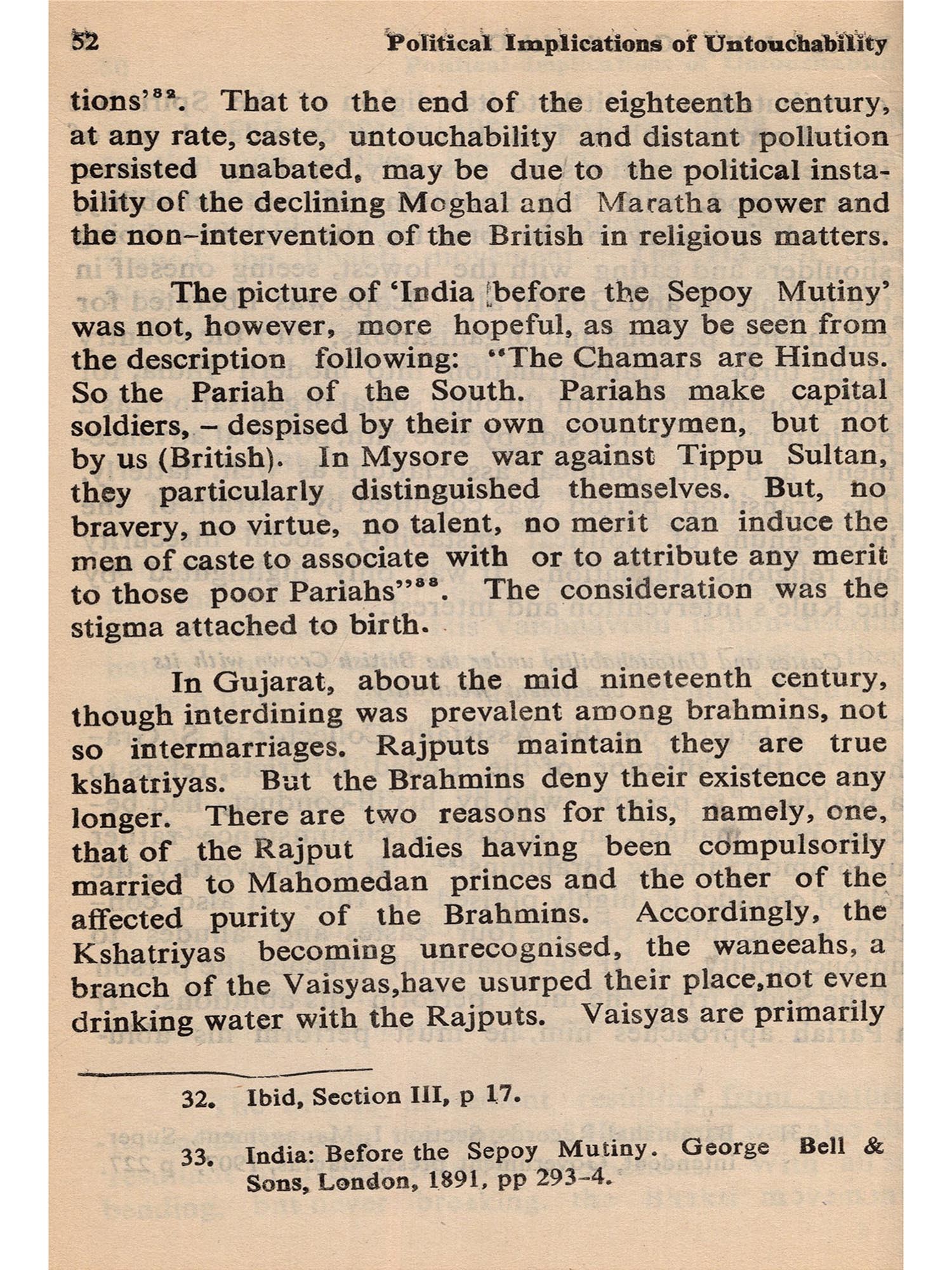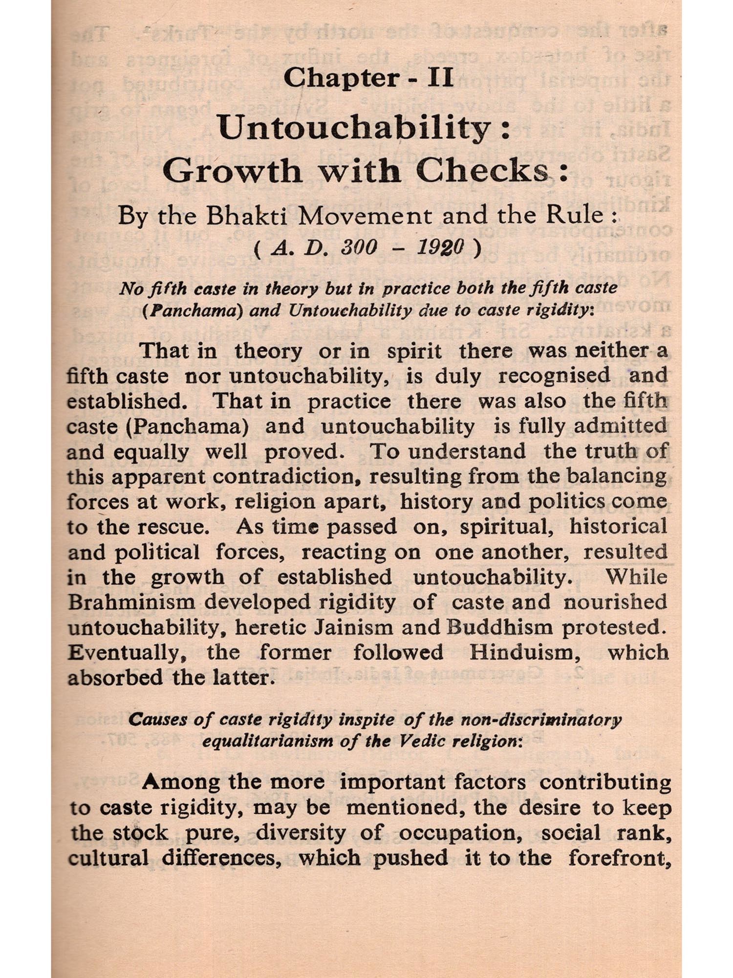 To explore ancient history is itself a difficult and tricky job in India. So much depends on conjecture and so little on tangible evidence, that controversy and confusion are the outcome of almost every investigation. When this is the situation in regard to the ordinary facts of ancient history, one could imagine how much more difficult it should be to probe into the possible motivations and background of a complex practice like untouchability, as we understand it today. On top of it all, to analyse the 'Political implications' of a practice, which, for a long time, did not necessarily emanate from, nor was mainly sustained by, political motivations (again, as we understand these terms today) is, at say the least, a still more bewildering job.