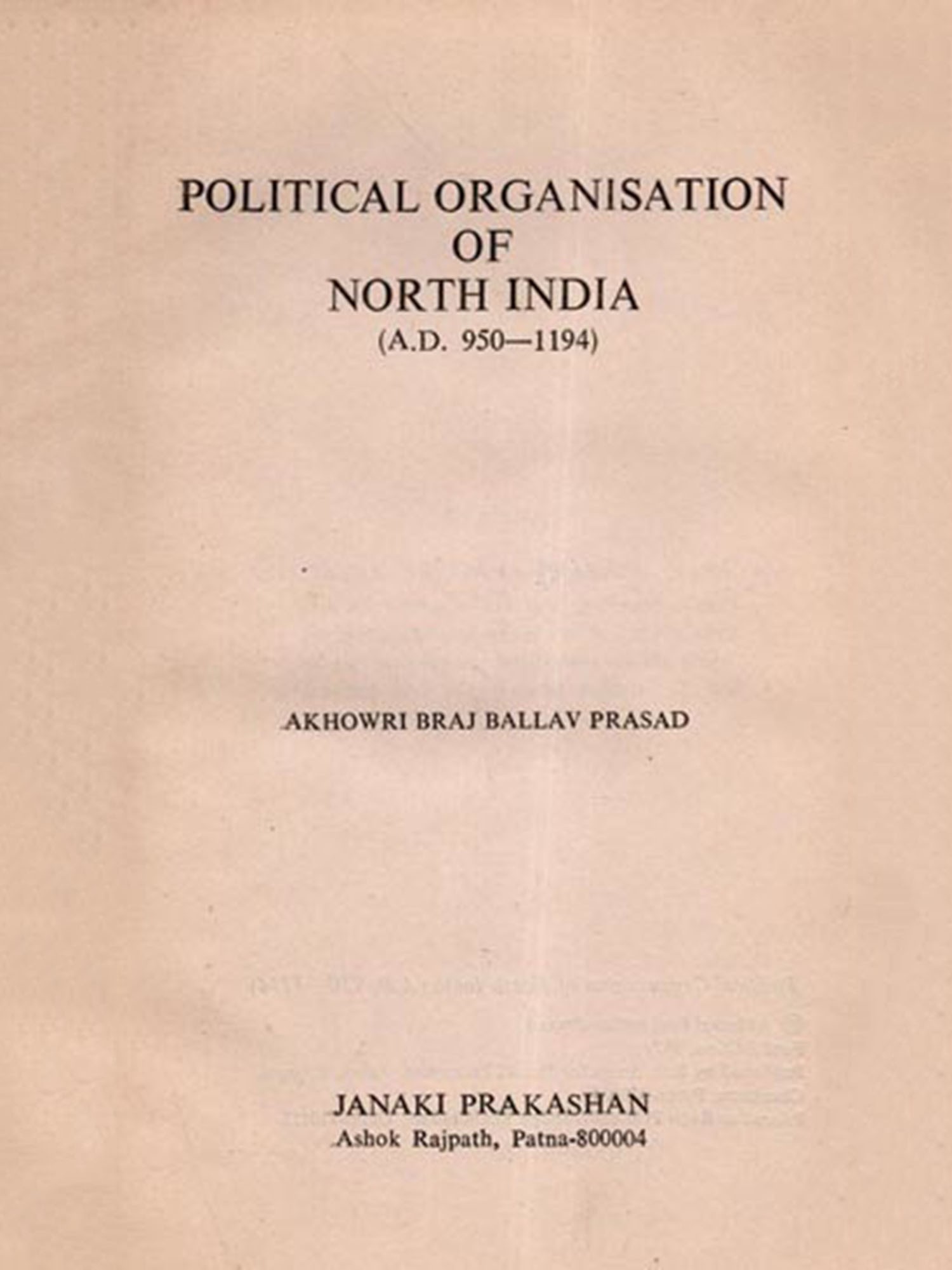 The present work substantially represents my thesis political Organisation of North India A.D. 950-1194 on which the Patna University awarded me the degree of Ph.D. in 1972. The period under survey represents the last two and a half centuries of the Hindu rule in North India. Many Rajput dynasties ruled over different parts of the country. They were brave, valiant and chivalrous, but the tragedy was that they quarrelled among themselves making it impossible for any well organised defence of the country against any foreign invasion which was normal feature of the period under review.