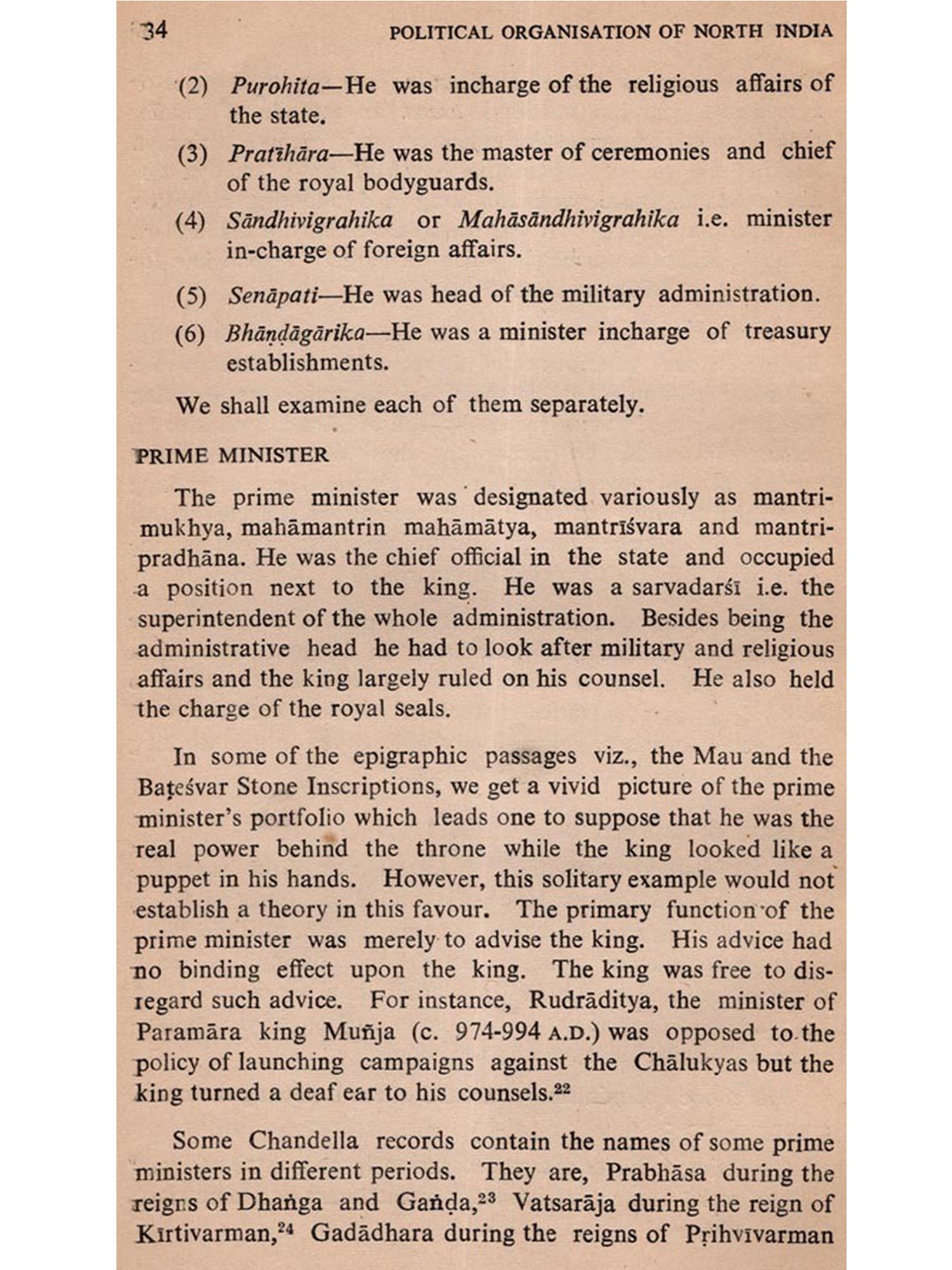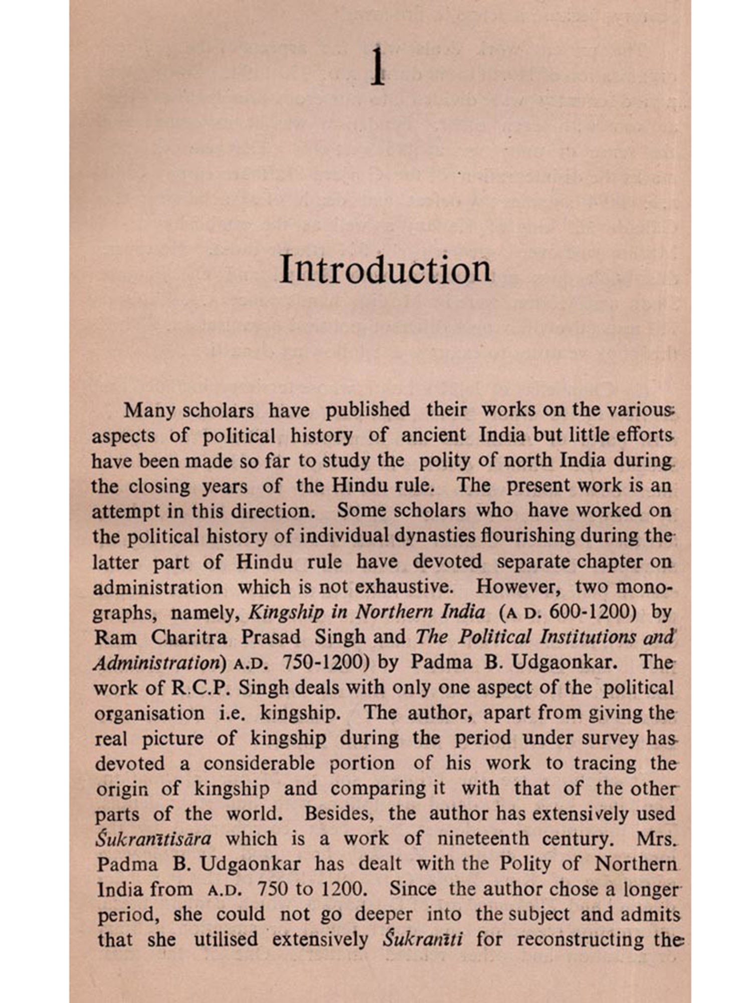 As little work had been done to study the polity of North India during the closing centuries of the Hindu period, this subject attracted my attention. We do not claim originality for everything said in this treatise, but we have made certain suggestions wherever possible. This is a modest attempt to give a systematic, critical and comprehensive account of the various aspects of the political organisation of the dynasties. that we have selected for the purpose of our study. Care has. been taken to utilise only those sources which fall within our period in order to ensure accuracy.