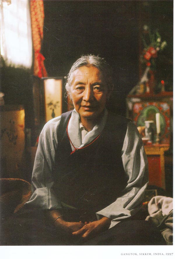 In 1996 I received a Fulbright scholarship to spend ten months in India and Nepal photographing and doing research on the religious life of Tibetan Buddhist refugees. With our two-year-old daughter, Palmo, we traveled to Yeshi's village of Bir in Himachal Pradesh, India, a few hours by road from Dharamsala. There we lived with Yeshi's brother, Lhundup, and their mother, Lhaga, who had escaped from Tibet in 1959 with her husband and her "cousin-brother," Gona Tulku Rinpoche (the term "cousin-brother" is an expression of the closeness of cousins in Tibetan society). Gona Rinpoche, who also lived in Bir, was renowned for his divinations, so I would always ask him if my journey would be safe before heading out from the village. I traveled with Lhundup to various Tibetan refugee settlements in India and the sacred Buddhist pilgrimage places of Sarnath and Bodhgaya. During this period I was able to photograph many Tibetan masters in India and Nepal.