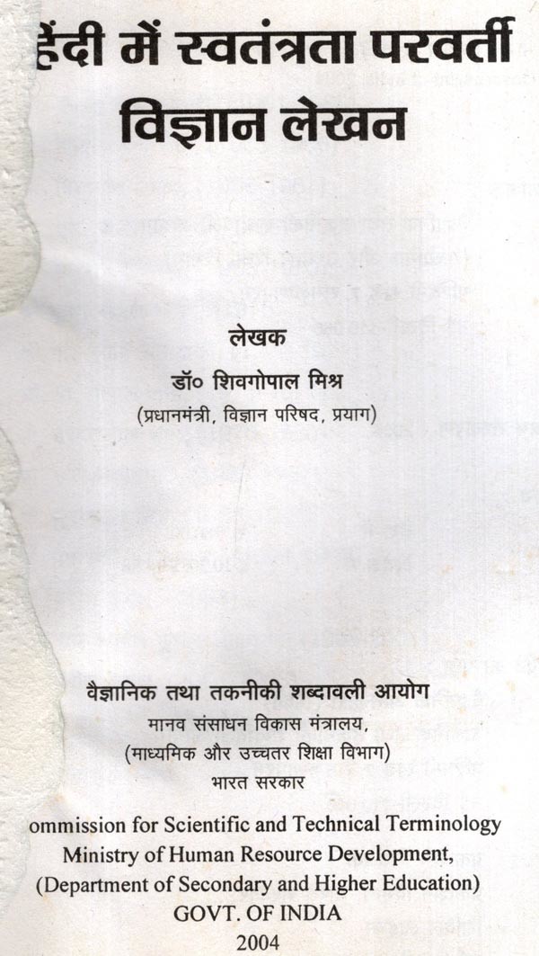 हिंदी में स्वतंत्रता परवर्ती विज्ञान लेखन: Post-Independence Science Writings in Hindi
