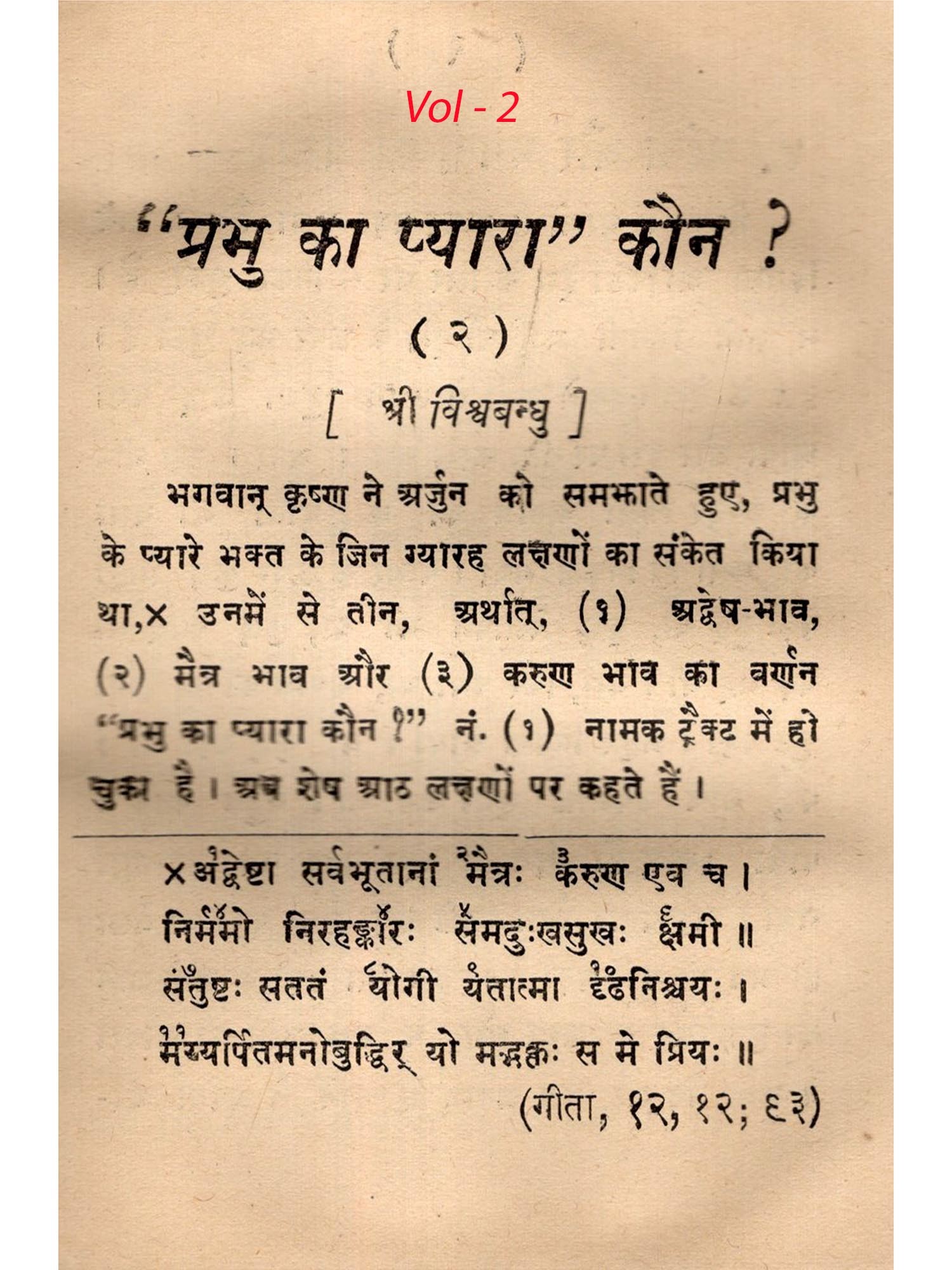 इस से पहले, विश्वेश्वरानन्द संस्थान की ओर से छः ग्रन्थमालाओं का प्रकाशन चल रहा है। लगभग १०० ग्रंथ छप चुके हैं। मार्च, १६५२ से संस्थान का हिन्दी मासिक मुख-पत्र, विश्व-ज्योति प्रचलित हो चुका है। वर्तमान सातवीं ग्रन्थमाला, जिस में लेखक का लिखा हुआ दूसरा ग्रंथ प्रकाशित हो रहा है, संस्थान के परम भक्त, स्व. श्री धनीराम भल्ला जी की पुण्य स्मृति में आज से एक मास पूर्व अप्रैल २६, १६५२ को, उन की दुबरसी के अवसर पर श्री चारुदेव शास्त्री के भारतीय संस्कृति नामक ग्रंथ के साथ प्रारम्भ की गई थी ।