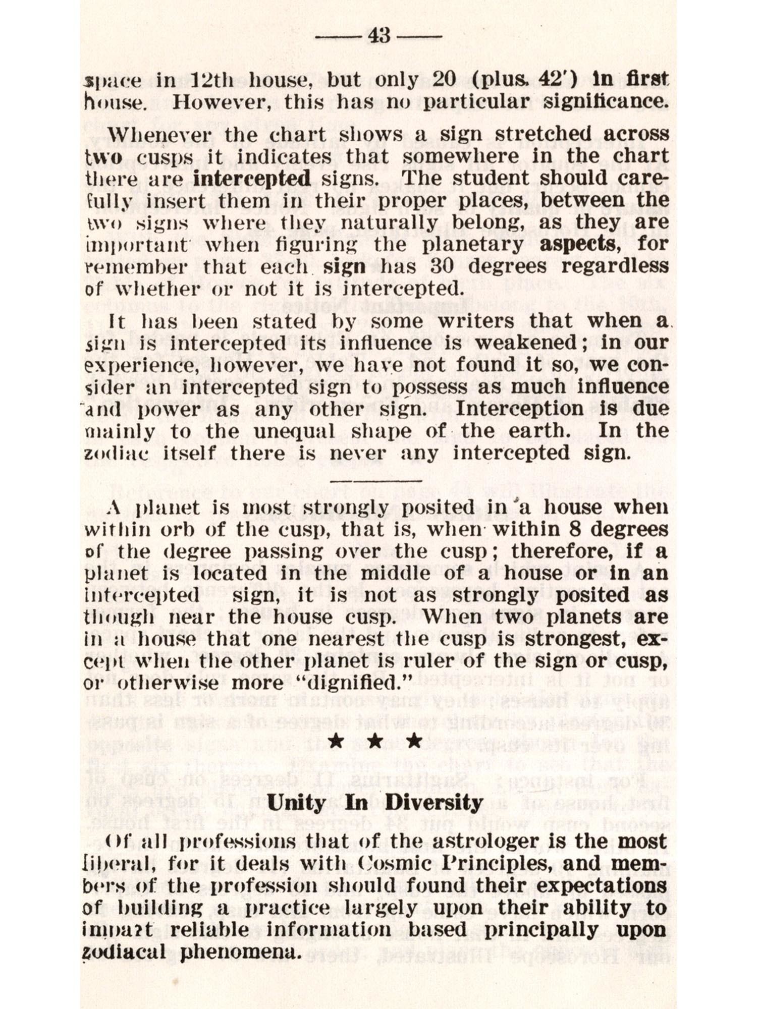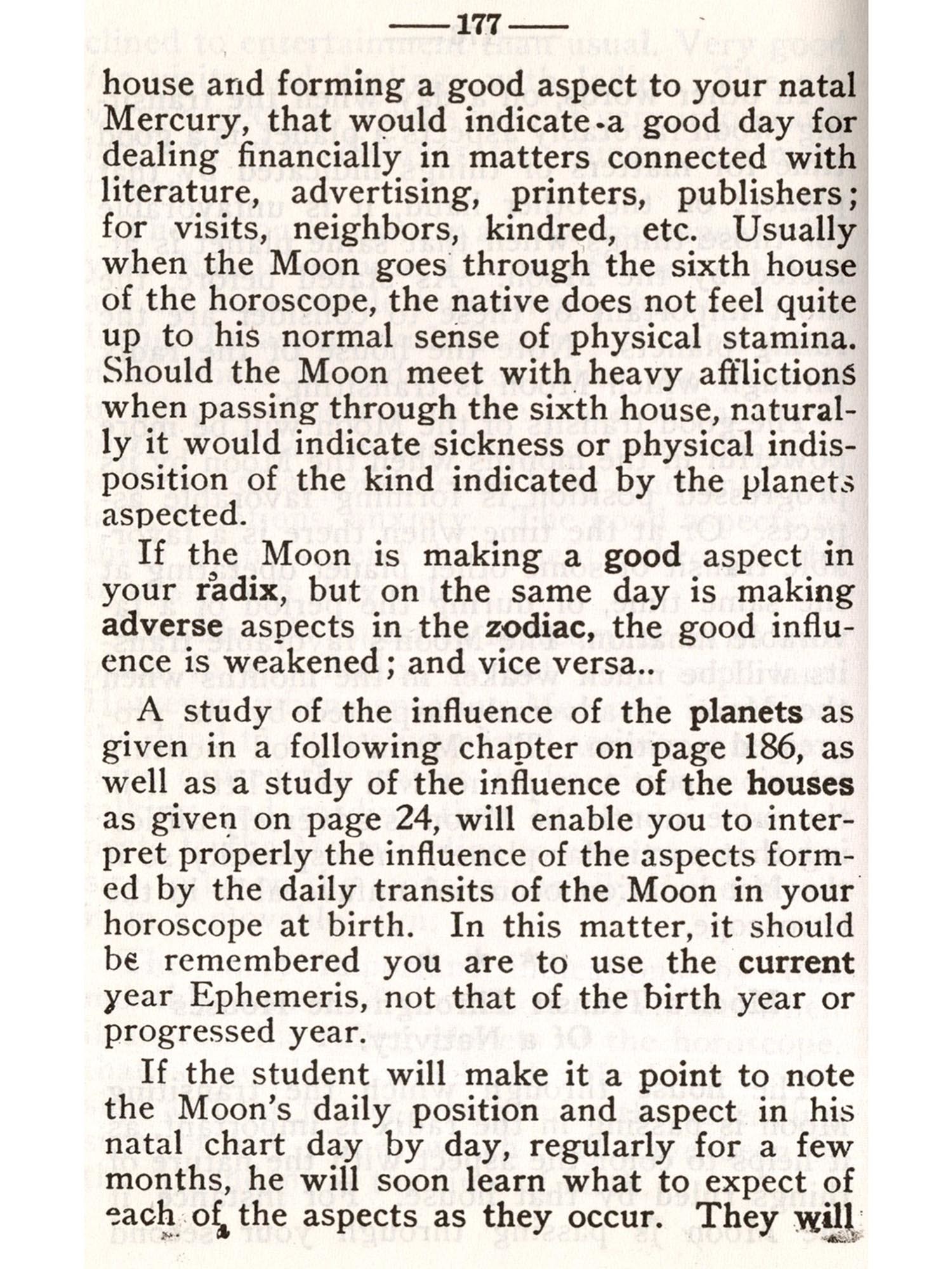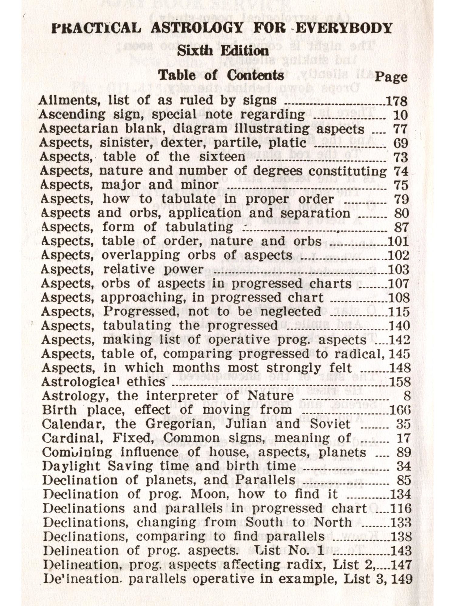 Astrology is the ancient art or science of divining the fate and future of human beings from indications given by the positions of the sun, moon, planets, and the stars. The study of astrology and the belief in it, as part of astronomy, is found in a developed form among the ancient Babylonians. Directly or indirectly. through the Babylonians, it spread to other nations. It came to Greece about the middle of the fourth century B.C., and reached Rome before the opening of the Christian Era. In India and China, astronomy and astrology are largely reflections of Greek theories and speculations. Astrology was actively cultivated in the region of the Nile during the Hellenistic and Roman periods. Astrology was further developed by the Arabs from the seventh to the thirteenth century, and in the Europe of the fourteenth and fifteenth centuries, astrologers were dominating influences at Court. Starting with the indisputable fact that man's life and happiness are largely dependent upon phenomena in the heavens, that the fertility of the soil is dependent upon the sun shining in the heavens as well as upon the rains that come from the heavens and that, on the other hand, the mischief and damage done by storms and inundations are to be traced likewise to the heavens - small wonder is it that a perfect theory has been developed, a theory of a complete accord between phenomena observed in the heavens and occurrences on earth. Such a theory is here developed, and made applicable to the individual. Indeed the latter half of the book is so simply and clearly written that the reader may cast his own horoscope. This book renders a further service by giving the reader a greater knowledge of the twelve types of people, their qualities and their faults. By knowing these characteristics, one can be more tolerant with his fellow-men appreciate their virtues and have patience with their weaknesses. Personally practiced, astrology assists one to reach his goal.