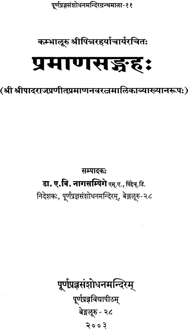 प्रमाणसड्.ग्रह: Pramana Sangraha of Kambaluru Pinnarahari Acarya (Commentary on Navaratnamalika of Sri Sripadarajatirtha)
