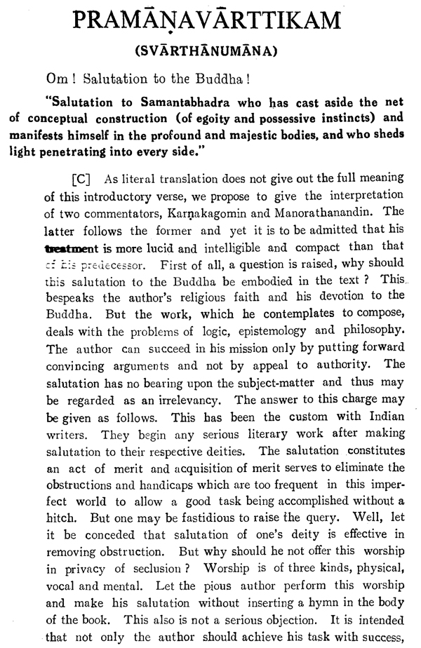 Dharmakirti's Pramavavarttika is an extremely difficult text both in respect of language and of content. His language is far too brief, which can be intelligible only after supplying the links which intervene one argument and another. Karnakagomin’s commentary supplies these ellipses and makes the text and the argument under-But in spite of the elaborate comments of Karnakagomin, auto commentary remains unintelligible in several places. There are many surds and snags which have caused us a veritable headache.