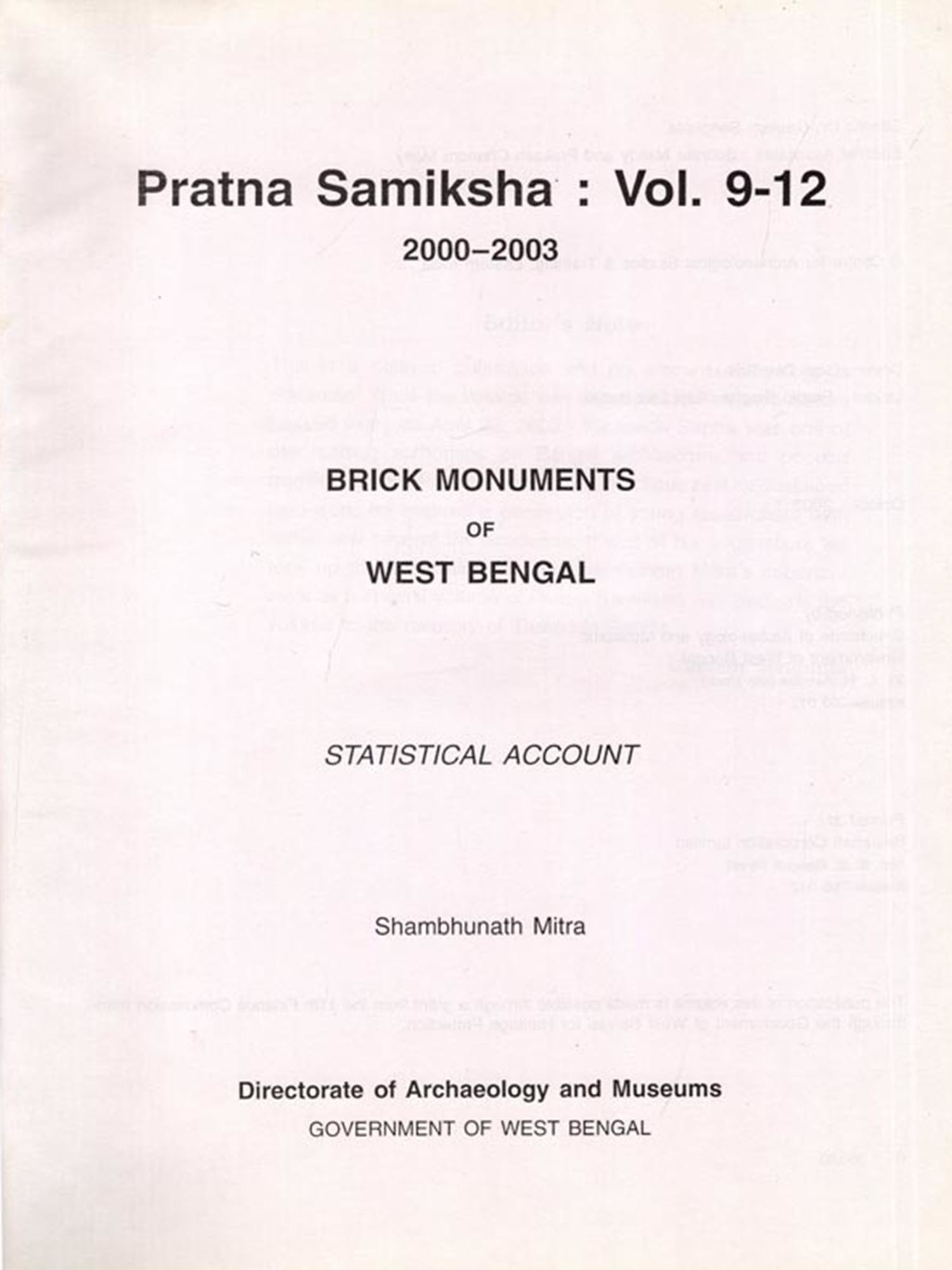 Pratna Samiksha: A Journal of Archaeology (Detailed Classification of Terracotta Decoration ) Volume-9-12, 2000-2003 (An Old and Rare Book)