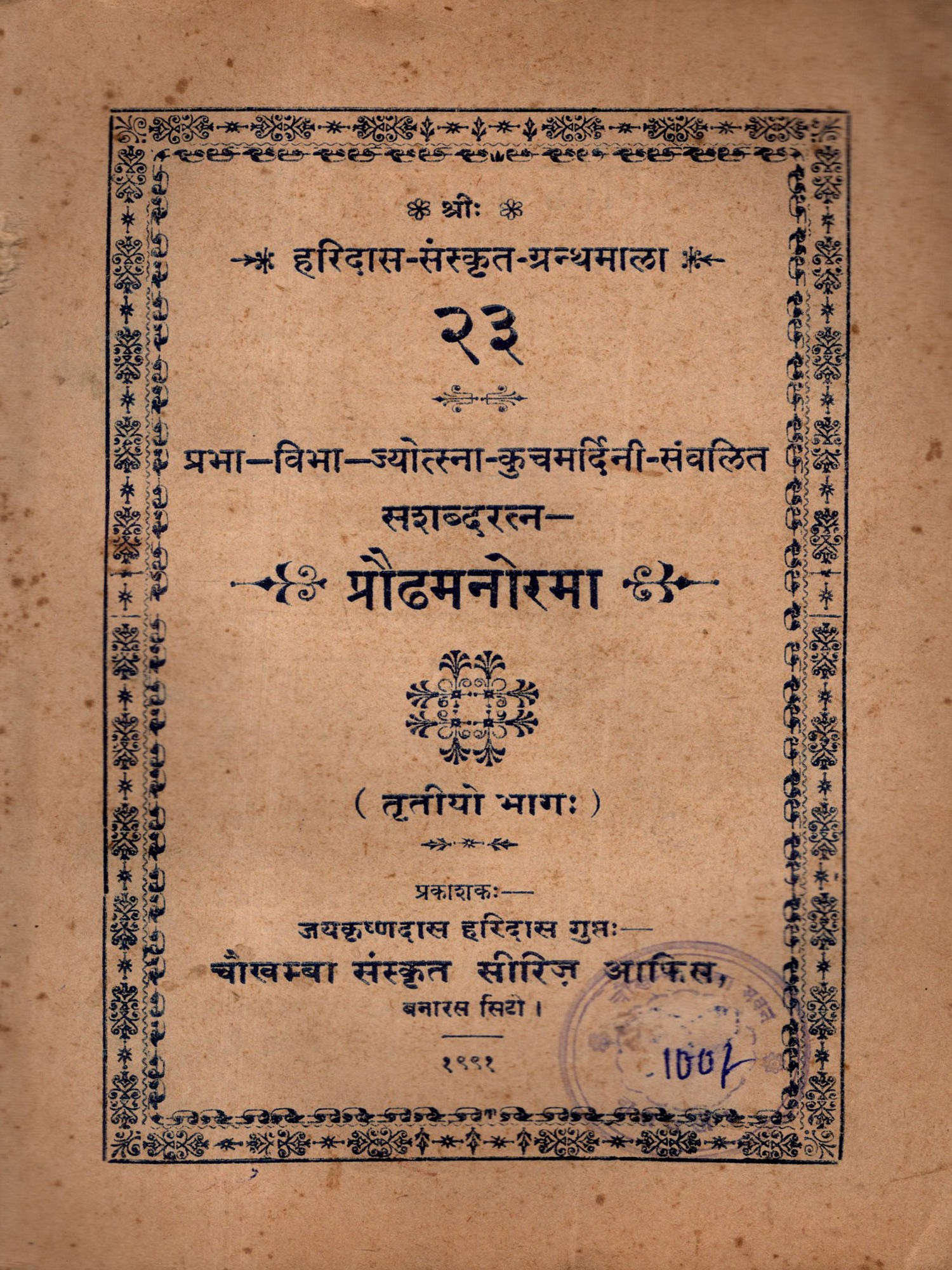 Kosakalpataru - Sanskrit Grammar (An Old and Rare Book)