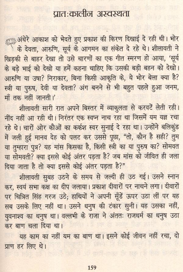 अकस्मात, शीलावती का स्नेहमयी हाथ, पुत्र के सिर पर ठिठक गया। उसके सुर में असहमति झलक उठी, "जाना चाहते हो तो अवश्य जाओ। भले काम वास्तव में भले ही होते हैं परंतु यह उनकी कथा है। मुझे केवल तुम्हारी कथा में रुचि है। मेरे पुत्र! यदि तुमने कुरुक्षेत्र के युद्ध में, धर्म के लिए लड़ते हुए अपने प्राण त्यागे तो तुम निश्चित रूप से कीर्तिमंडित हो कर, देवलोक में जाओगे। तुम वैतरणी के दूसरी ओर, अपने पिता, अपने पितामह, अपने प्रपितामह तथा उनके भी पिता व नामविहीन पितरों को खड़ा पाओगे।