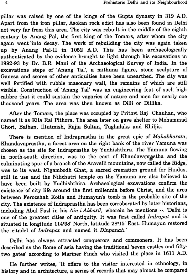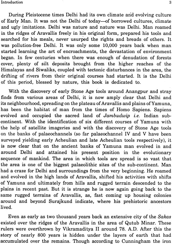 The book takes back the antiquity of Delhi and neighbouring areas, located on the contours of the Aravallis, to several hundred thousand years back. It gives a first hand account of one of the biggest palaeolithic sites in the Indian sub-continent, discovered and excavated by the author, where Stone Age tools were recovered from different palaeo-channel areas in development sequence. The palaeo-channels were formed as a result of shifting of Yamuna, which in turn was caused due to massive tectonic movements. The richness of the site in variety and quality of tools makes it a text book site for the students of pre-history and also for the common man.