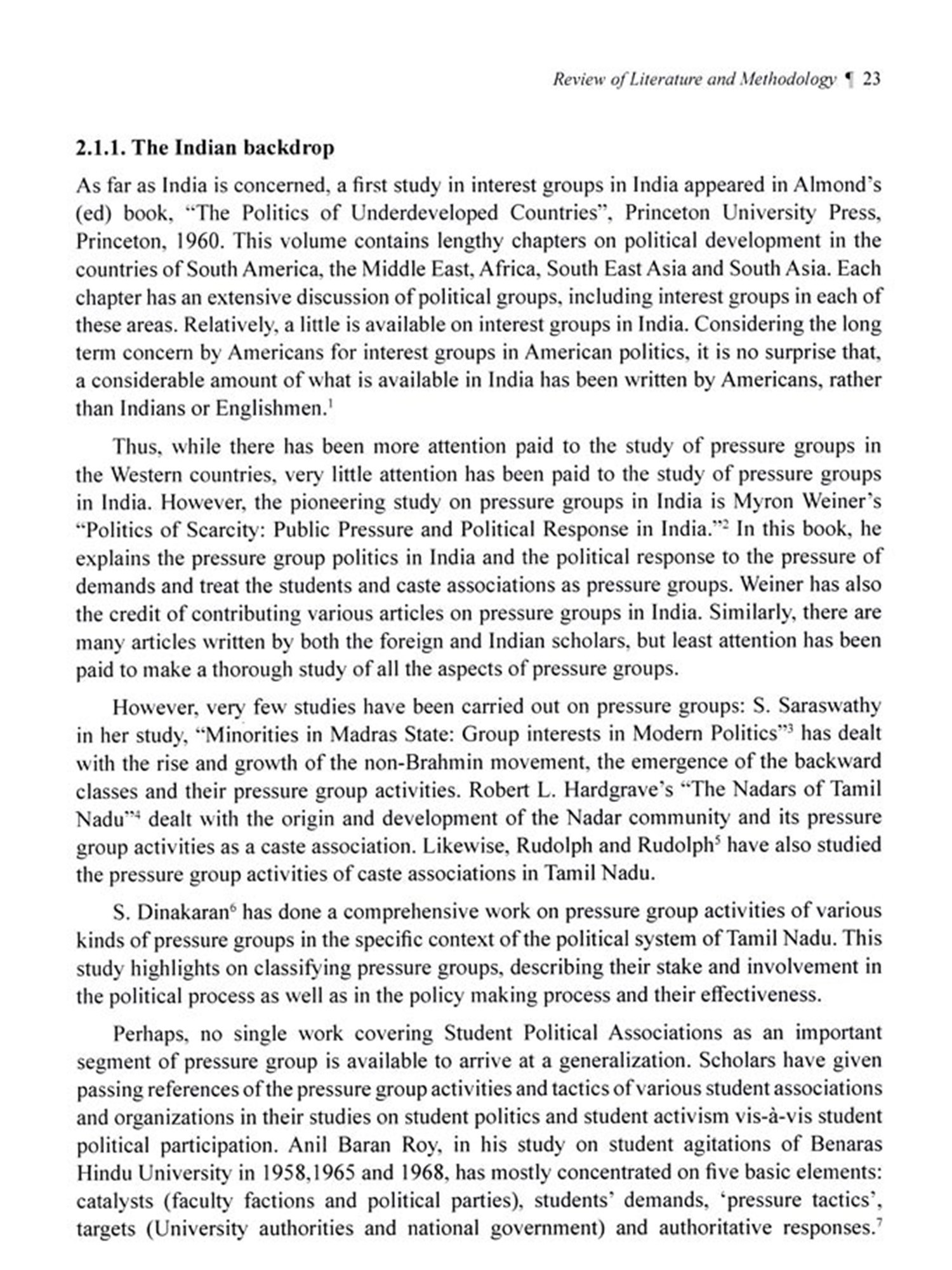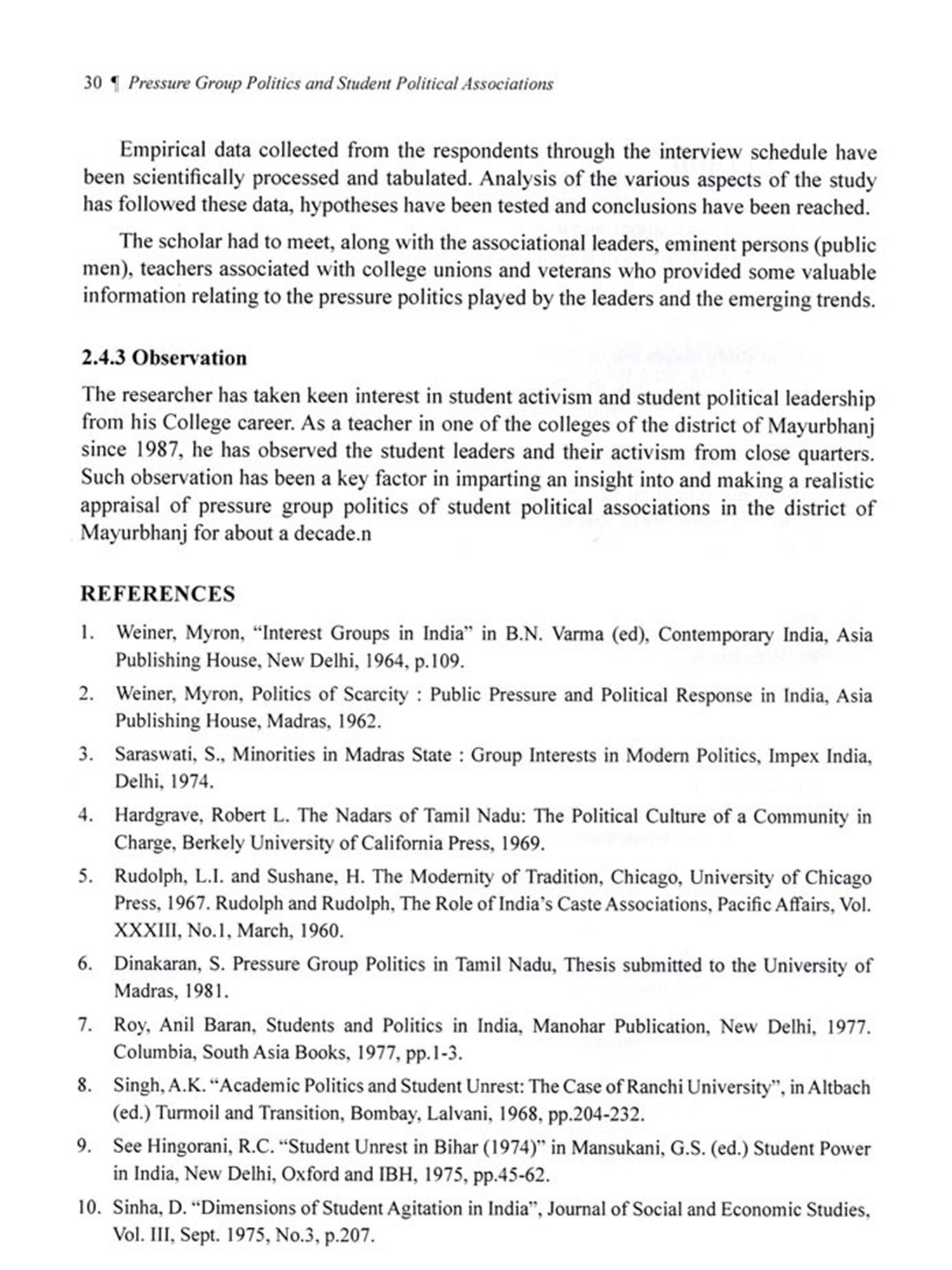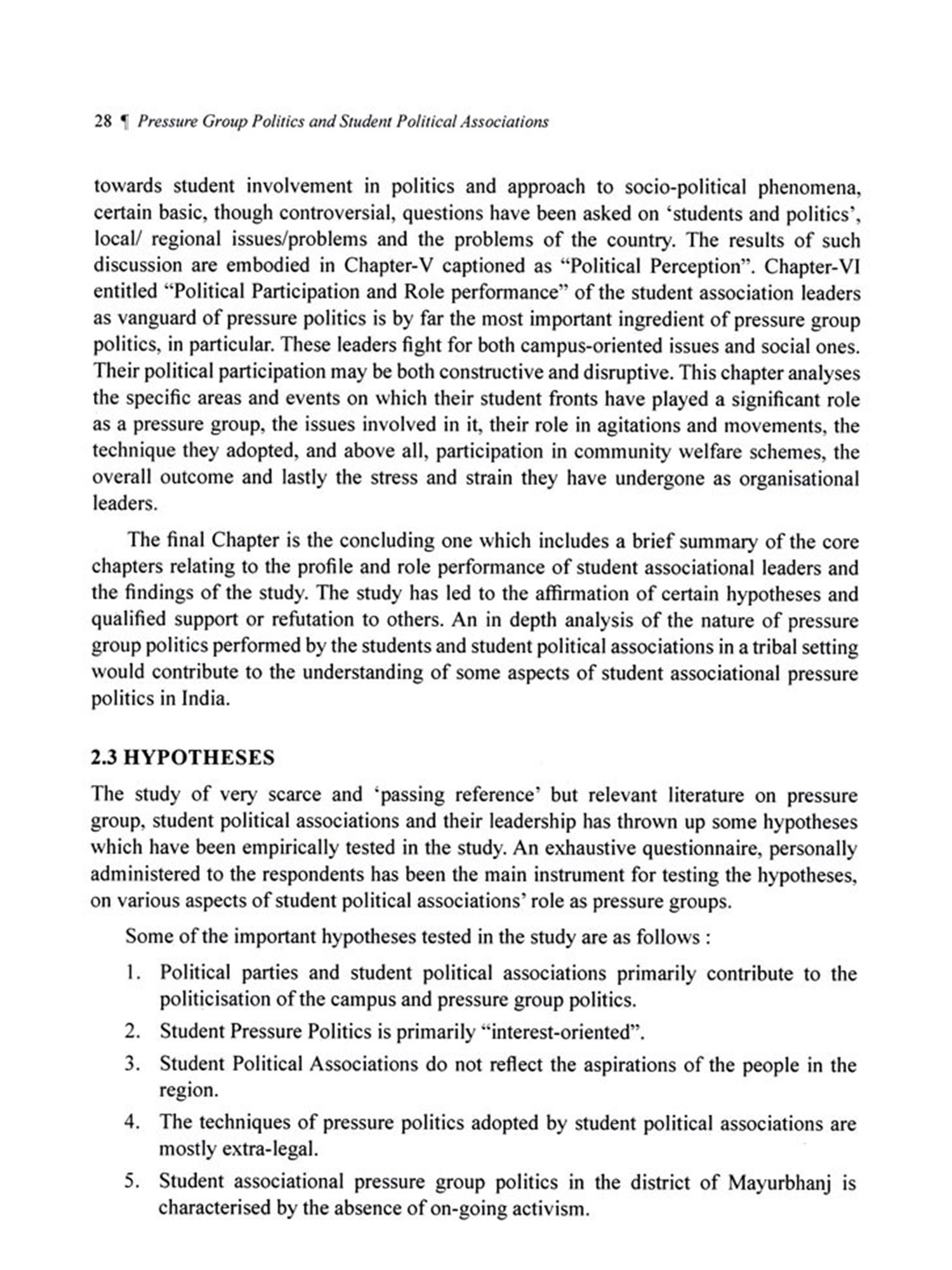 Pressure Group Politics constitutes a prominent aspect in the study of political literature. Most of the scholarly works on pressure groups have been on trade-unions, socio-religious or communal groups, occupational or business groups. But very little attempt has been made to probe into the significant role played by student political associations as another important segment of pressure groups. As student politics and student leadership are the stepping stone to state/national politics and leadership, the student fronts of political parties-the student political associations-are considered to be conspicuous pressure groups in the body politic. These associations constitute a dynamic force on the campus and also play a greater role in off campus politics. They continue to be a subtle but significant propelling agent for the politicization of the campus even in the midst of the recent Lyngdoh Committee recommendations and, at the same time, they play a very prominent role in the overall modernization and social transformation in developing areas. In the context of democratic process, shared powers and responsibilities, when the most desired and sort for reforms do not go through or get support of students and student political associations, unless they have been given a voice and a vote; the role of student political associations as a pressure group can hardly be ruled out. Student political activism and unrest, especially the growing phenomenon of student radicalism, has led to the reappraisal of interest in student politics in many countries. Students demonstrate, boycott the classes, manhandle the authorities, hold meetings on and off campus, shout slogans in the street, damage public property, disrupt both academic and private life to register their dissent and demand. The issues that push them towards agitation are many and varied, ranging from the proximate campus problems to the issues relating to broader plane of the socio-economic spectrum. More pertinent perhaps than the sporadic manifestations of the agitational behaviour of the students, is the domain of student politics per se that acutely mirrors in all respects the political overtones of the 'professional-world." Political intrigues, manoeuvres. the characteristic features of the power struggle at the micro-political centre seem to have its reflection on our university campuses. Students now bear direct links with the political parties and most of the major student organizations on the campuses are actually student wings of the national/regional parties This has generated some sort of politics of factionalism within the campus in which faction tries to outstrip the other in power race in order to maximize its political gains. The on-going struggle for domination and control of the nerve-centres of power among the rival student groups has transformed the campuses into miniature political centres to a point where collective educational interests have succumbed to petty factional politics based on extra educational premises." Students, in general, and student political associations, in particular, have acted as powerful pressure groups in almost all countries. They have been well entrenched in the political process and political behavior Student activism and student movements have attracted immediate attention of educational and political authorities. Students' support for political parties, student political associations and leaders in electoral contests has proved crucial in some countries. Student participation in cultural movements has also been important. "Student movements and organizations, as carriers of modern, often radical political ideologies have been important spreading ideological trends in various countries, particularly in the developing areas. In fact, student youth and student political associations have a magnificent share in the resurgence of nationalism and patriotism and breaking the shackles of colonialism and imperialism in the continents of Asia, Africa and Latin America. They have dramatized the problems of society and the university and played their part as a dynamic force in educational and political change. They have played a vanguard role in exposing the dysfunctions and deficiencies within the educational system and the society at large. With limited literacy and political awareness among the general population, students and student political associations constitute a disproportionately large section of bearers of public opinion in such societies. Thus, as an important segment of pressure group, the nature and character of the various student political associations have direct but significant consequences for the emerging political culture and political process of their countries. The character and process of decision making vis-a-vis policy formulation, and policy implementation and the overall social change and social transformation of a country is considerably shaped by the nature and working of the students and student political associations. As such, the study of student political associations as an important component of pressure group politics assumes capital significance.