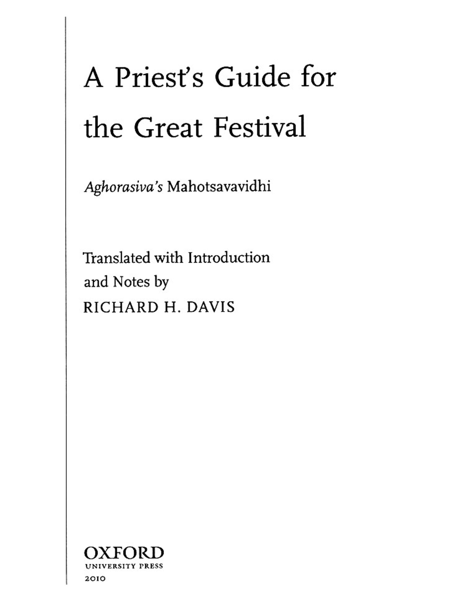 A Priest's Guide for the Great Festival: Aghorasiva's Mahotsavavidhi
