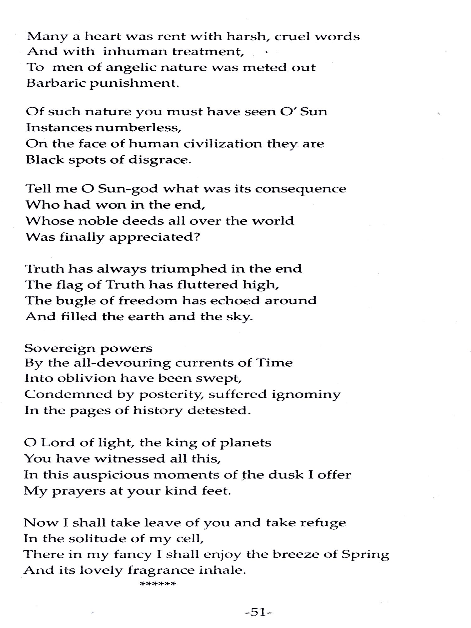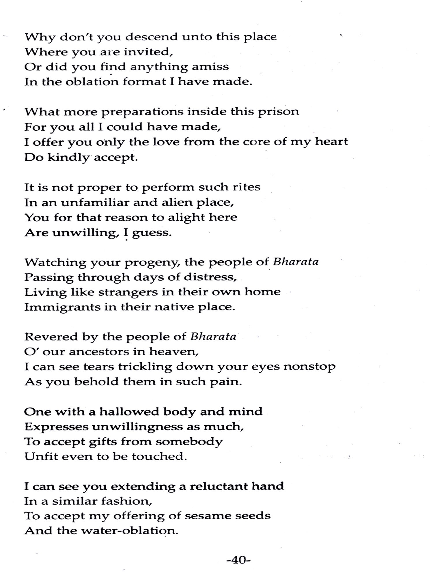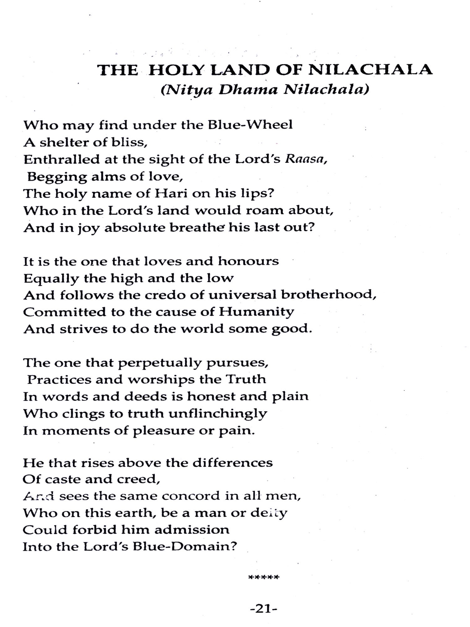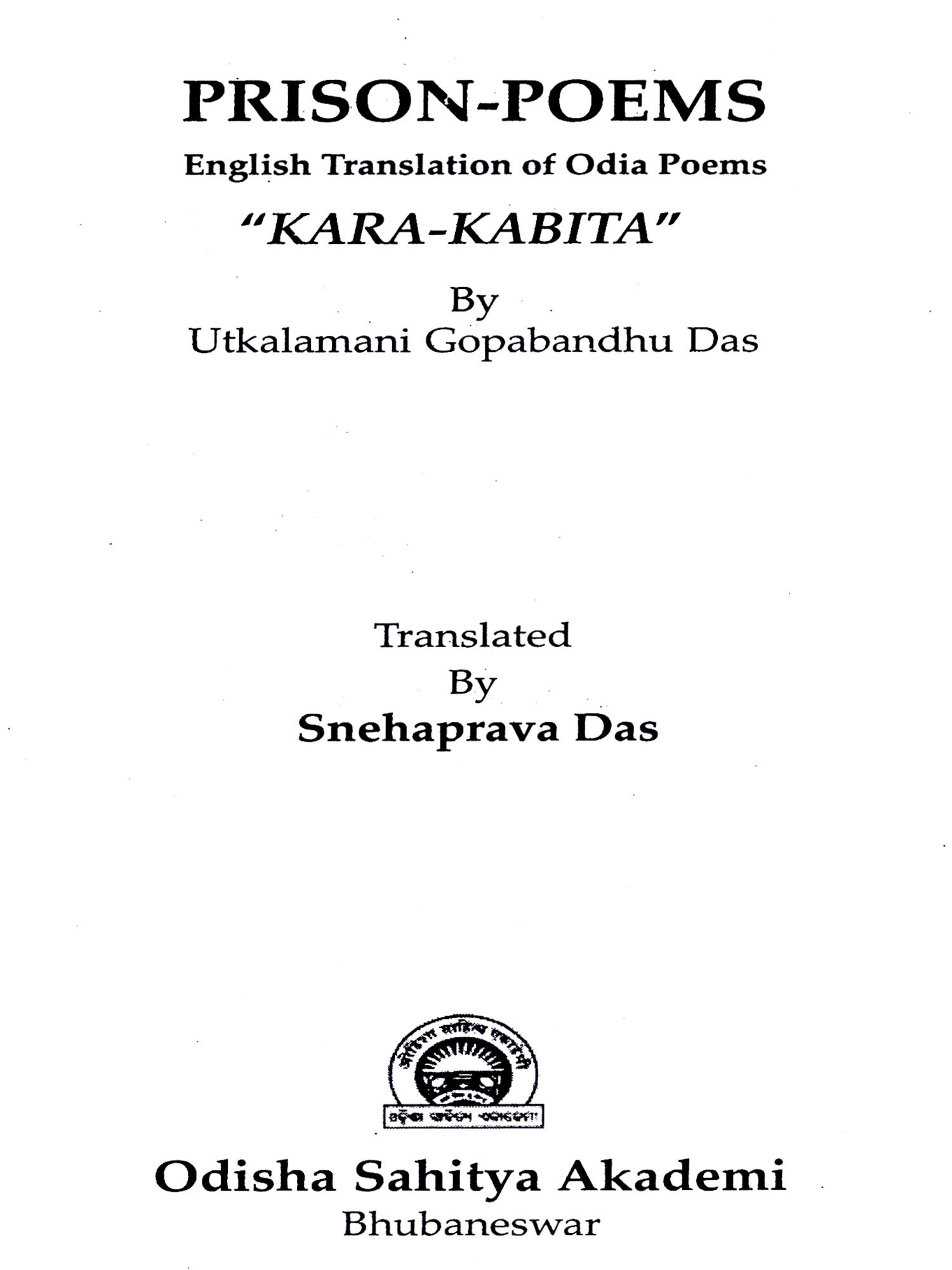 Translation of Odia literary works in different vernaculars of India, as well as in English aims not only at connecting the Odia thoughts and sentiments to other regional literature by bridging the gap of language dissimilarity but to situate it in the ambit of world literature. Our endeavour to publish the English rendering of Pandit Gopabandhu Das's Kara-Kabita will be adequately rewarded if the text will be successful in effectuating the literary connection and intended interaction at least in a certain degree, and is well received by the Odia and the non-Odia readers as well.