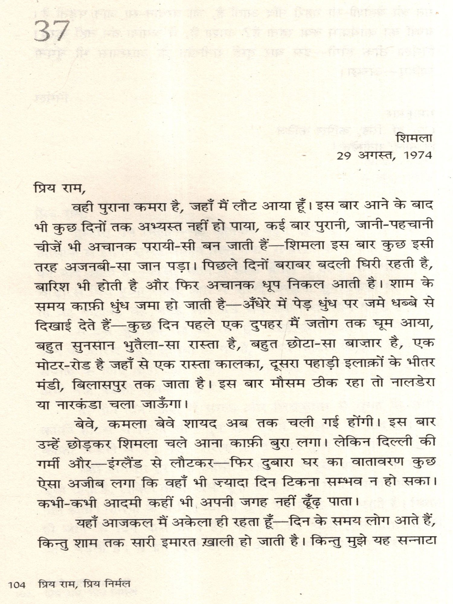 प्रिय राम, प्रिय निर्मल: Priya Ram, Priya Nirmal- Nirmal Verma-Letters of Ramkumar