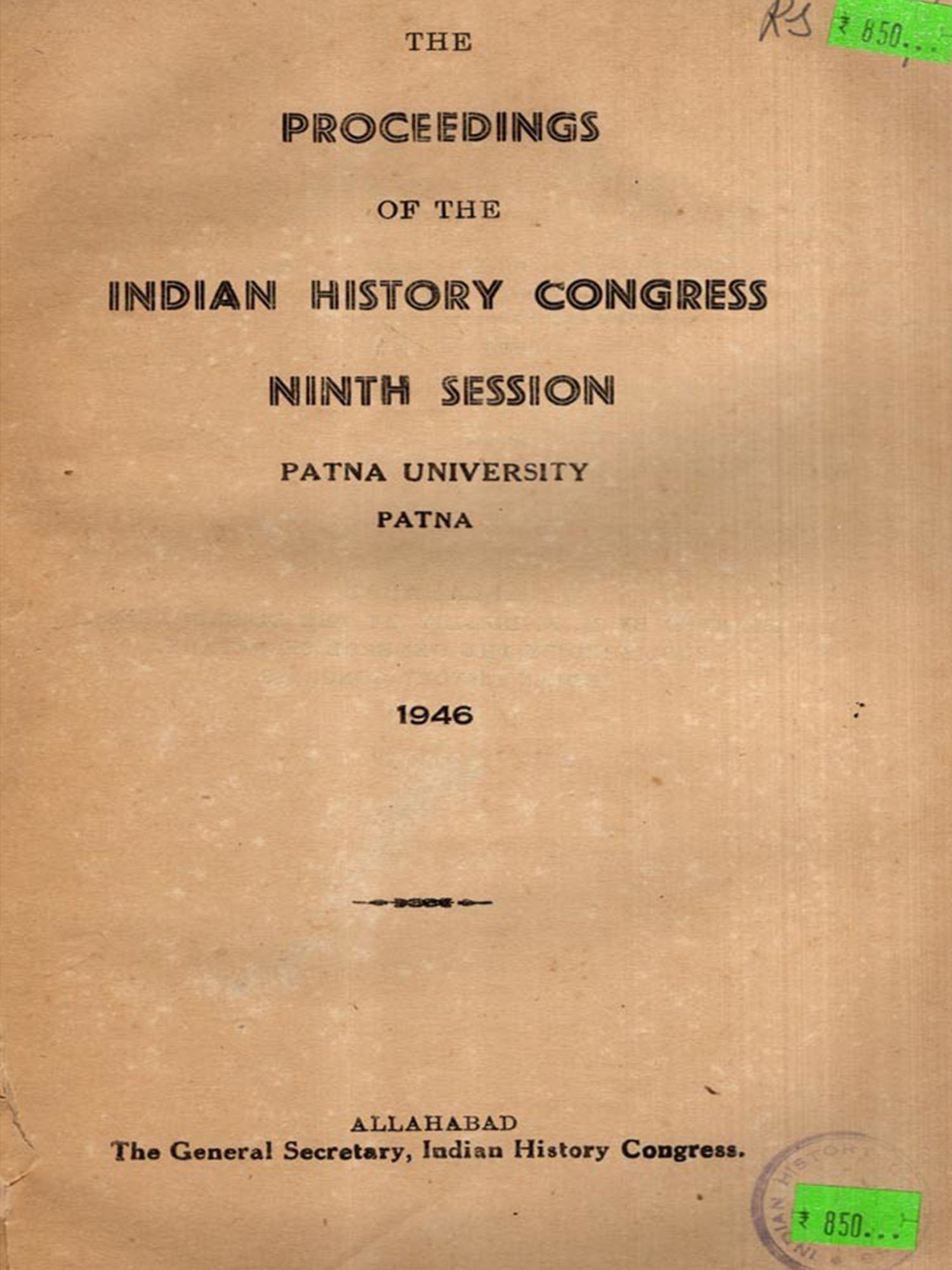 The Proceedings of the Indian History Congress- Ninth Session Patna University Patna 1946 (An Old and Rare Book) (Only 1 Quantity Available)