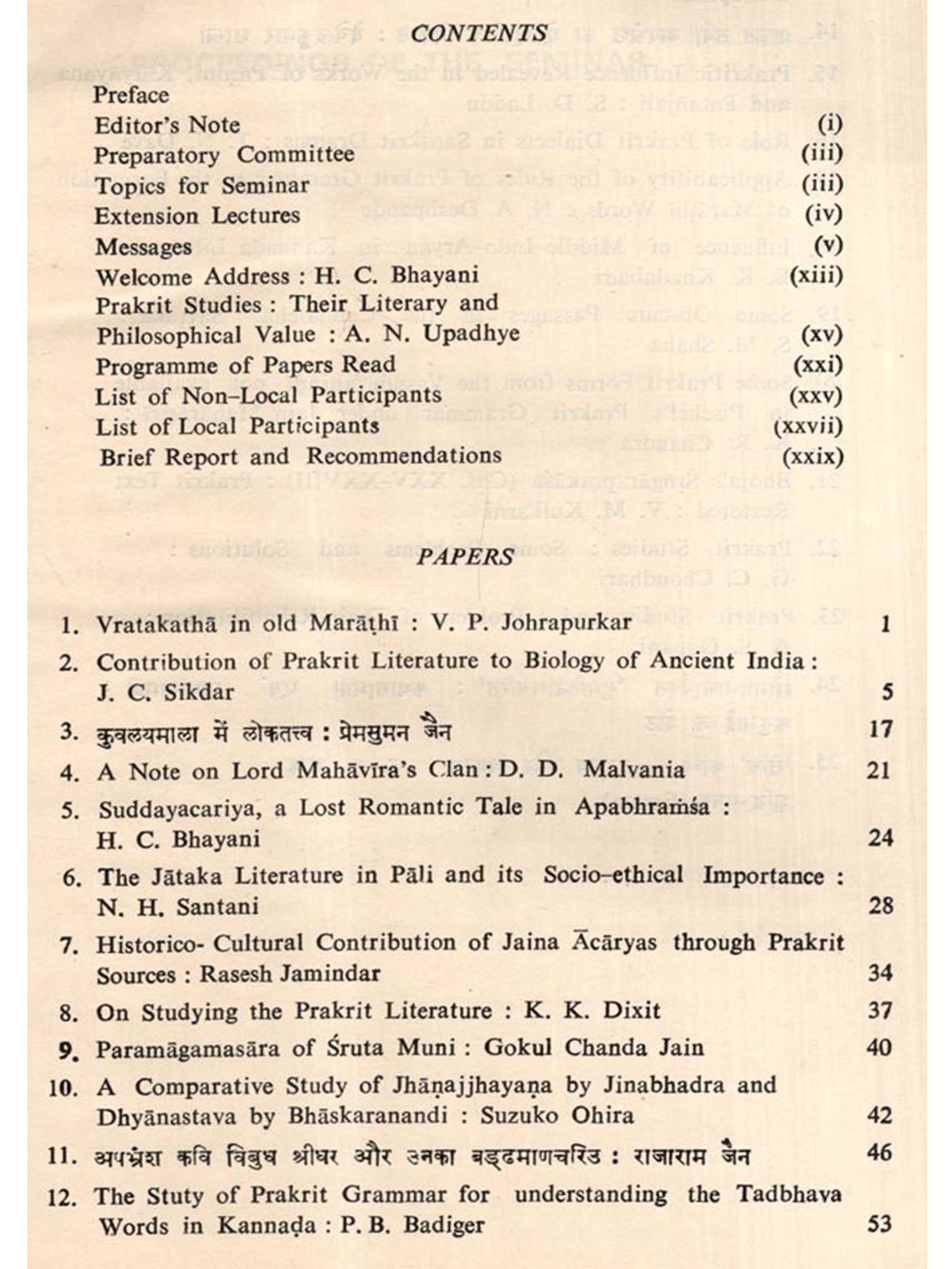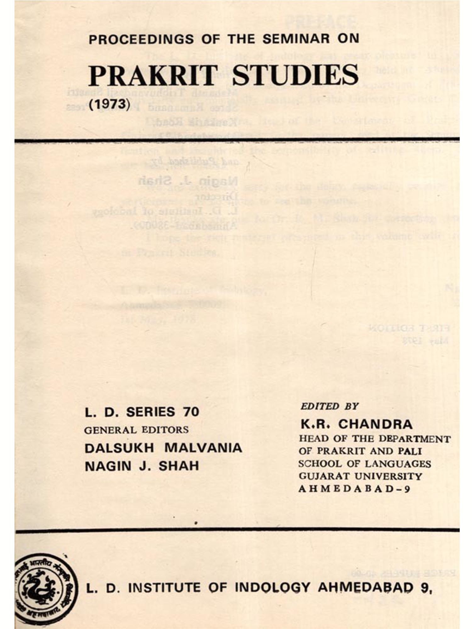 The L. D. Institute of Indology has great pleasure in publishing the Proceedings of the Seminar on Prakrit Studies, held at Ahmedabad from March 22 to 25 th, in 1973 organised by the Department of Prakrit, Gujarat University and financially assisted by the University Grants Commission.