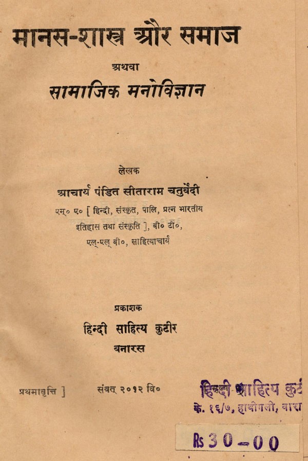 मानस-शास्त्र और समाज (सामाजिक मनोविज्ञान)- Psychology and Society- Social Psychology (An Old and Rare Book Only 1 Quantity Available)