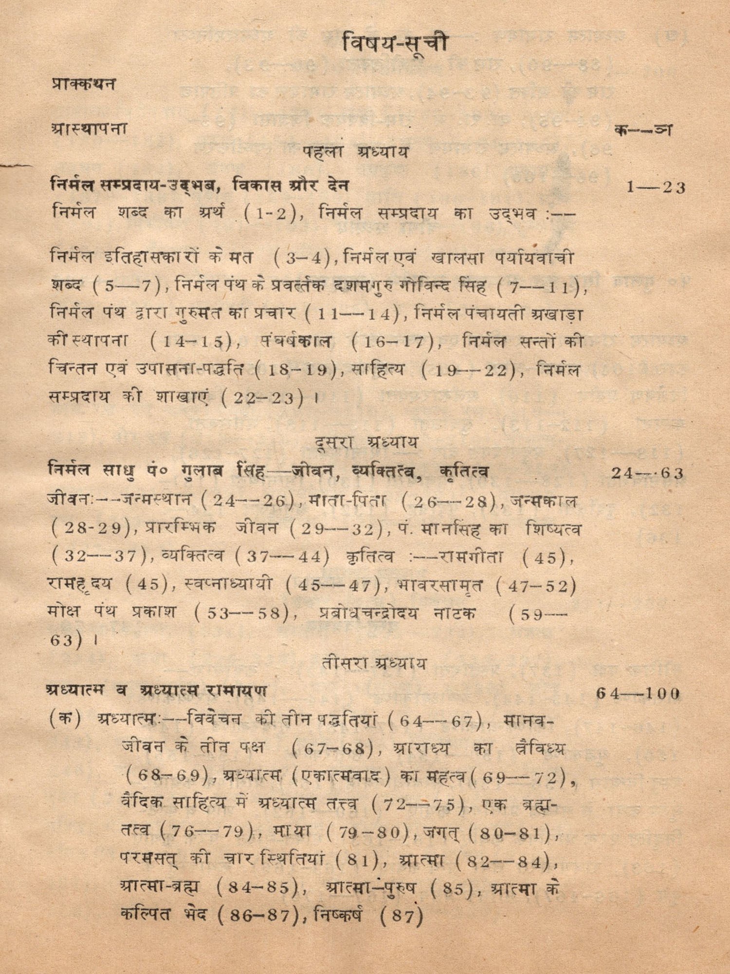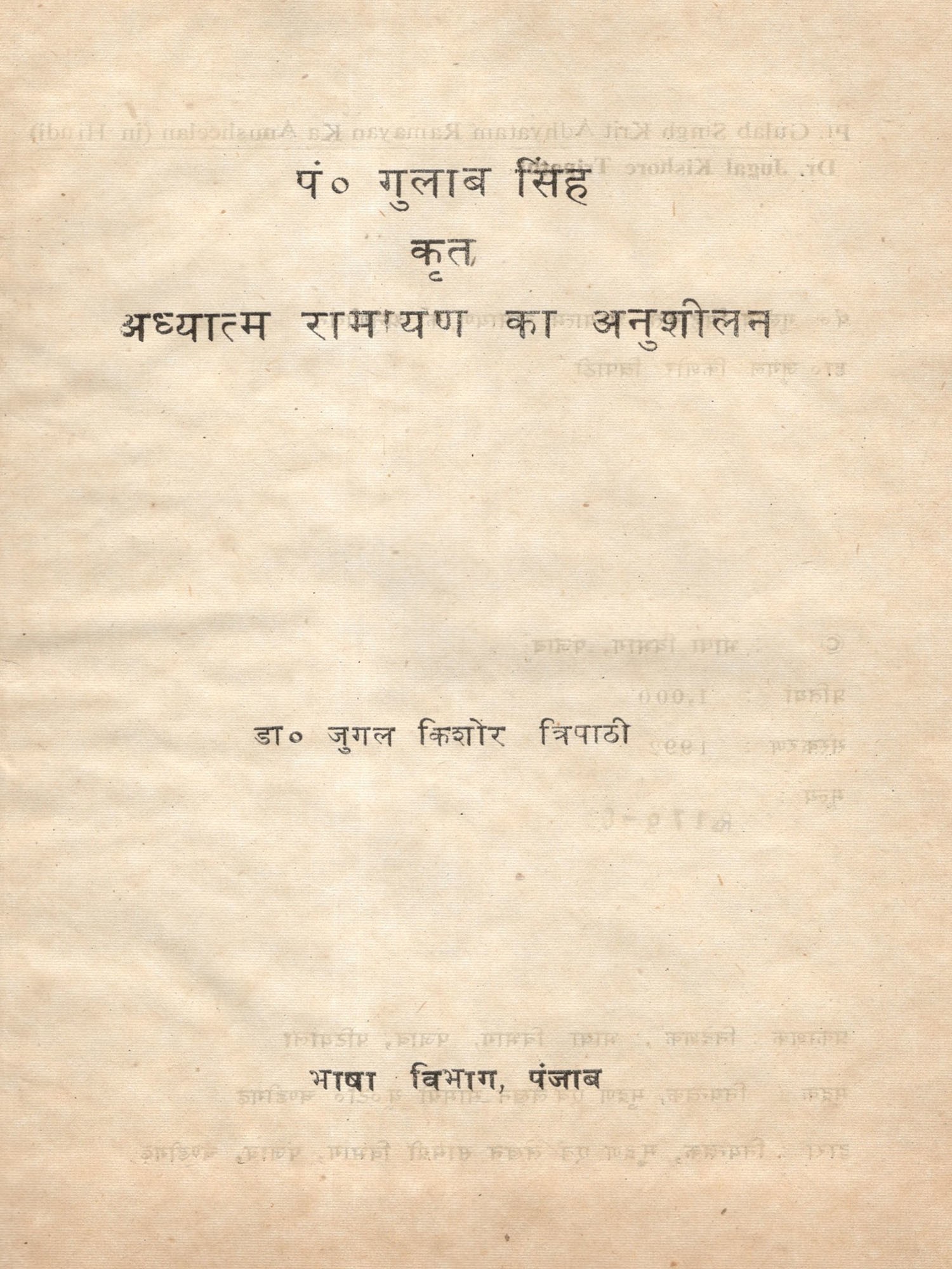 पंजाब के मध्यकालीन राम काव्य रचयिताओं में पंडित गुलाब सिह का महत्त्वपूर्ण स्थान है। वे एक महान् सहृदय रामभक्त कवि थे। इनकी महान् रचना अध्यात्म रामायण को संस्कृत के अध्यात्म रामायण का अनुवाद समझा जाता रहा है परन्तु इस शोध-प्रबन्ध में दोनों का तुलनात्मक अध्ययन प्रस्तुत करते हुए विद्वान् लेखक नेपं० गुलाब सिहं कृत अध्यात्म रामायण की विशिष्टताओं को प्रभाव पूर्ण ढंग से उद्घाटित किया है। इसे इन्होंने अध्यात्म रामायण का अनुवाद नहीं अनुसूजन की संज्ञा दी है। यह पौराणिक महाकाव्य विषय और शैली की नवीनता, सरसता और सुबोधता के कारण साहित्य की अमूल्य निधि है। निर्मल धारा का गुरमत के प्रचार व प्रसार में सराहनीय योगदान रहा है। निर्मल मत एवं पं० गुलाब सिह के महान् साहित्यिक योगदान को भी लेखक ने सफलतापूर्वक उजागर किया है।