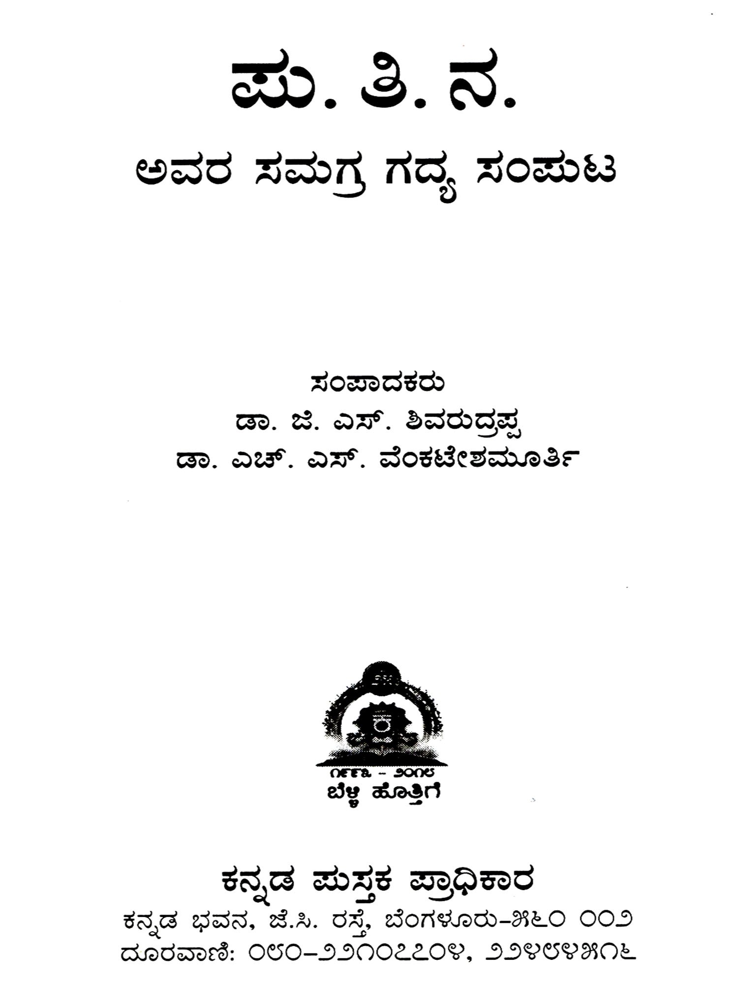 ಸಮಗ್ರ ಗದ್ಯ: Samagra Gadya- Vol- 3: (An Anthology of Complete Prose) Kannada