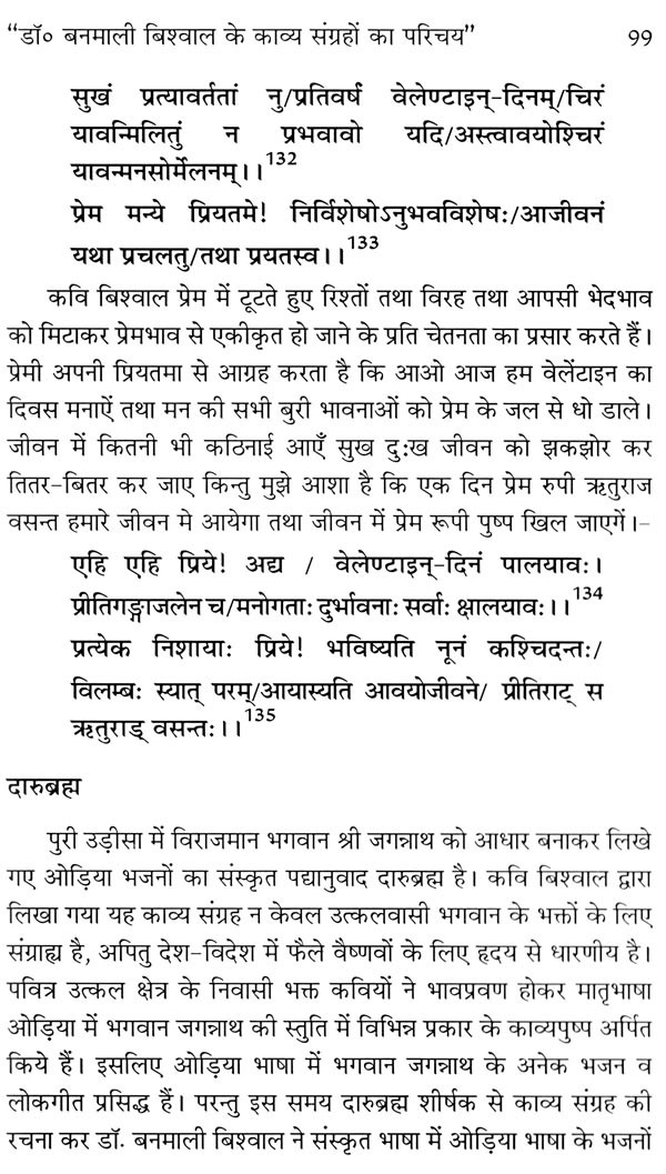 In her present title, Dr. Kusum Sharma keeps record of my seven collections of Sanskrit poems and four collections of Sanskrit stories. The great poetic journey starts from सङ्गमेनाभिरामा (1996) to यात्रा (2002) passing through व्यथा (1997), त्रऋतुपर्णा (1999), प्रियतमा (1999), वेलेंटाइन्-डे-सन्देशः (2000) and दारुब्रह्म (2001) as important milestones in between. Contextually she passes references to my collections of short stories including नीरवस्वनः, बुभुक्षा, जगन्नाथचरितम् and जिजीविषा along with the single collection of my Odia stories titled as सकालर मुहँ एषणा is my new collection of Sanskrit short stories being published by Central Sanskrit University. I have a couple of collections of Odia poems, namely, वञ्च तुमे मो आयुष नेइ and कश्चित्कान्ता ... My translated Sanskrit writings include तारा अरुन्धती, विवेकलहरी (poems), जन्मान्धस्य स्वप्नः (stories) and पत्रालयः (drama) etc. So far as my unpublished works are concerned, two novels and two Sanskrit dramas, one mahakavya (महात्म माहात्म्यम्) as well as more than ten khandakavyas are still awaiting publication. Some of my khandakavyas are recently published in Padyabandha which is a unique periodical of Sanskrit poetry. Similarly Kathasarit is a unique periodical of Sanskrit stories and Drik is a unique periodical on criticism of contemporary Sanskrit literature. I am happy to note here that I have been a part and partial of these contemporary Sanskrit journals so far as the editing is concerned.I have edited more than 100 issues of more than ten contemporary Sanskrit/Odia/Hindi periodicals some of which are related to contemporary Sanskrit Research.