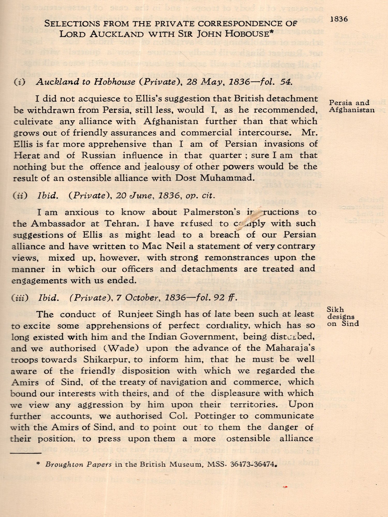 It is earnestly hoped that the publication of selections from these rare and valuable private papers of Auckland, Ellenborough, Hardinge and Dalhousie will provide positive information on the crucial period of the history of the Sikhs from 1836-1849. and would lead to many sober revisions of current fallacies and myths, in particular to some of the main events referred to in the Introduction.