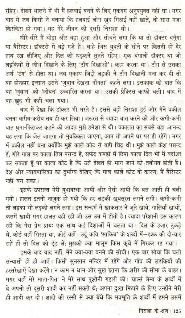 त्यागीजी में वह जिन्दादिली और मस्ती या बेफिक्री है कि उनके लेखन को उन्मुक्त लेखन का दर्जा आसानी से दिया जा सकता है। उसमें एक सहज और स्वच्छन्द लेखन की भंगिमा हर जगह है और इसीलिए वह एक ओर जहाँ निष्कलुष हास्य की सृष्टि करता है वहीं दूसरी ओर किसी भी ग्रन्थि से मुक्त व्यंग्य की रचना भी। हास्य के विषय में कहीं पढ़ा-सुना था कि उम्दा हास्य वह है जो उसे भी हँसने पर मजबूर कर दे जिस पर कि हँसा जा रहा है। त्यागीजी का हास्य ऐसा ही है। न तो उनके हास्य में और न ही उनके व्यंग्य में कोई दुर्भावना है और न वह हीन-ग्रन्थि का शिकार है। स्वस्थ मन और प्रकृति से ही वह उपजा है। उनके हास्य की सृष्टि अकसर कहने के अन्दाज या फिर अतिरंजना से होती है और उनके अन्दाजे बयाँ के अस्त्र हैं उनकी 'शार्पविट' और उनकी वाग्विदग्धता।