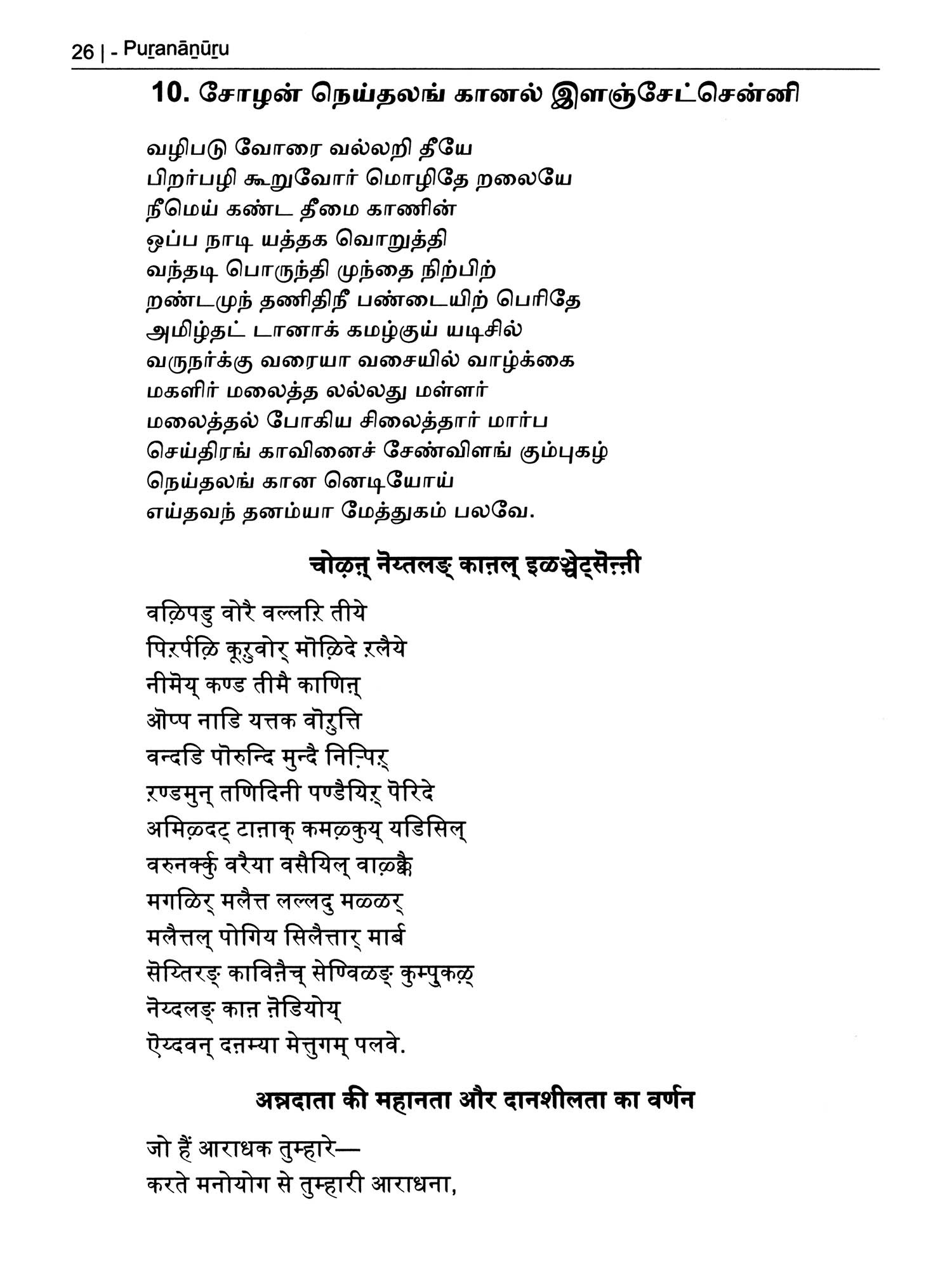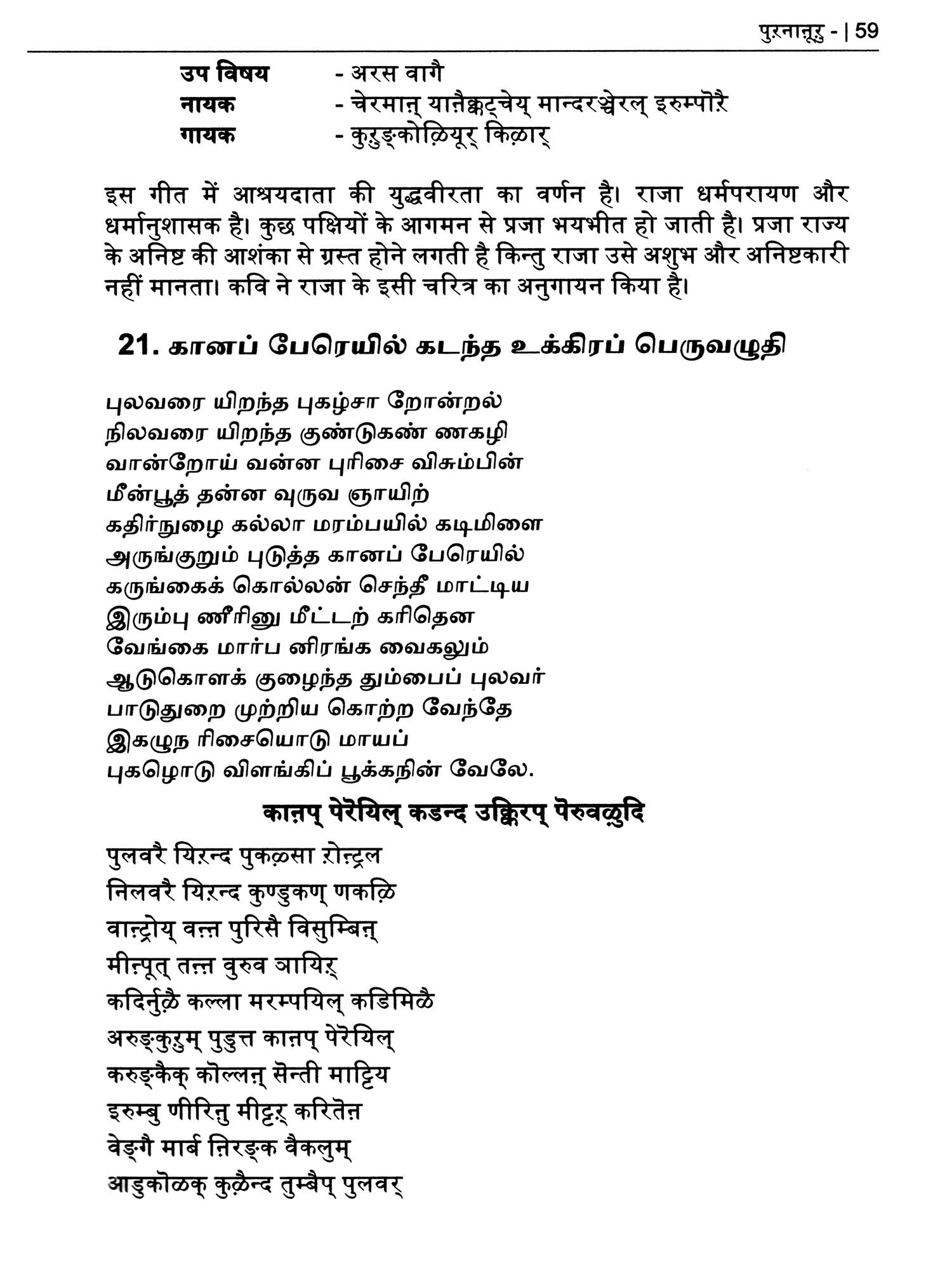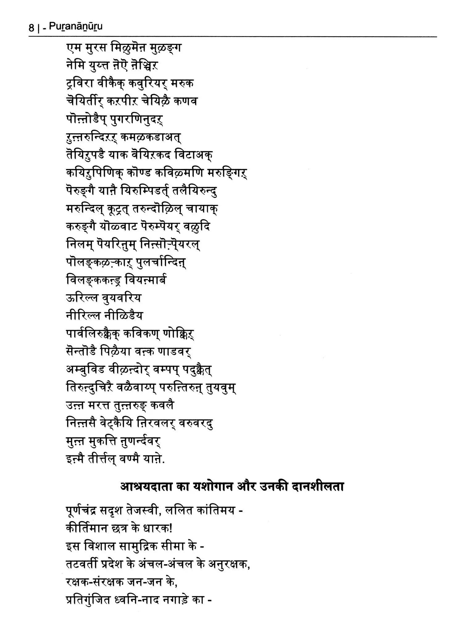 पुऱनाऩूऱु (புறநானூறு)-Purananuru: Ancient Tamil Poets (Original Text, Devanagari Transliteration, and Verse Translation)