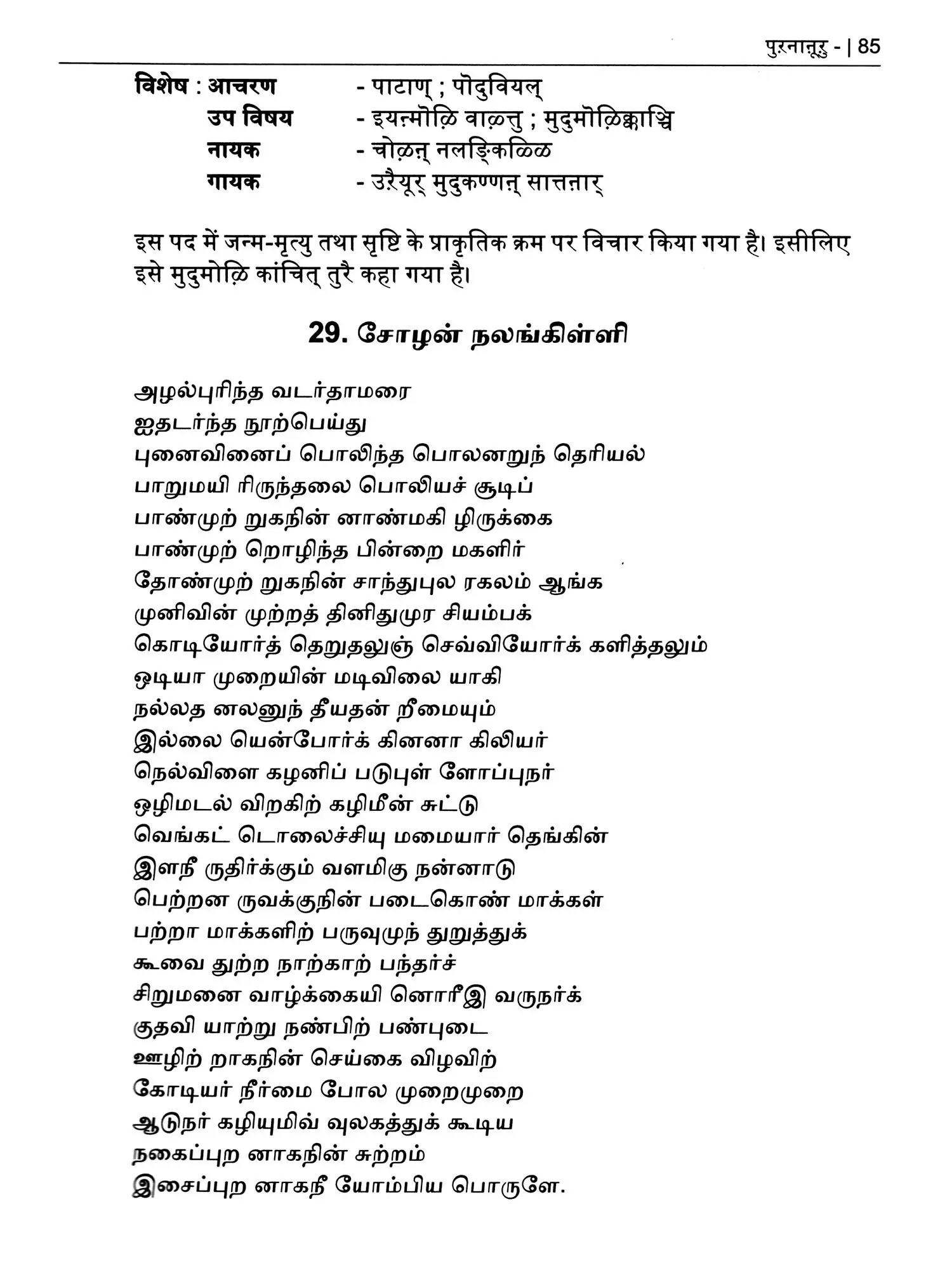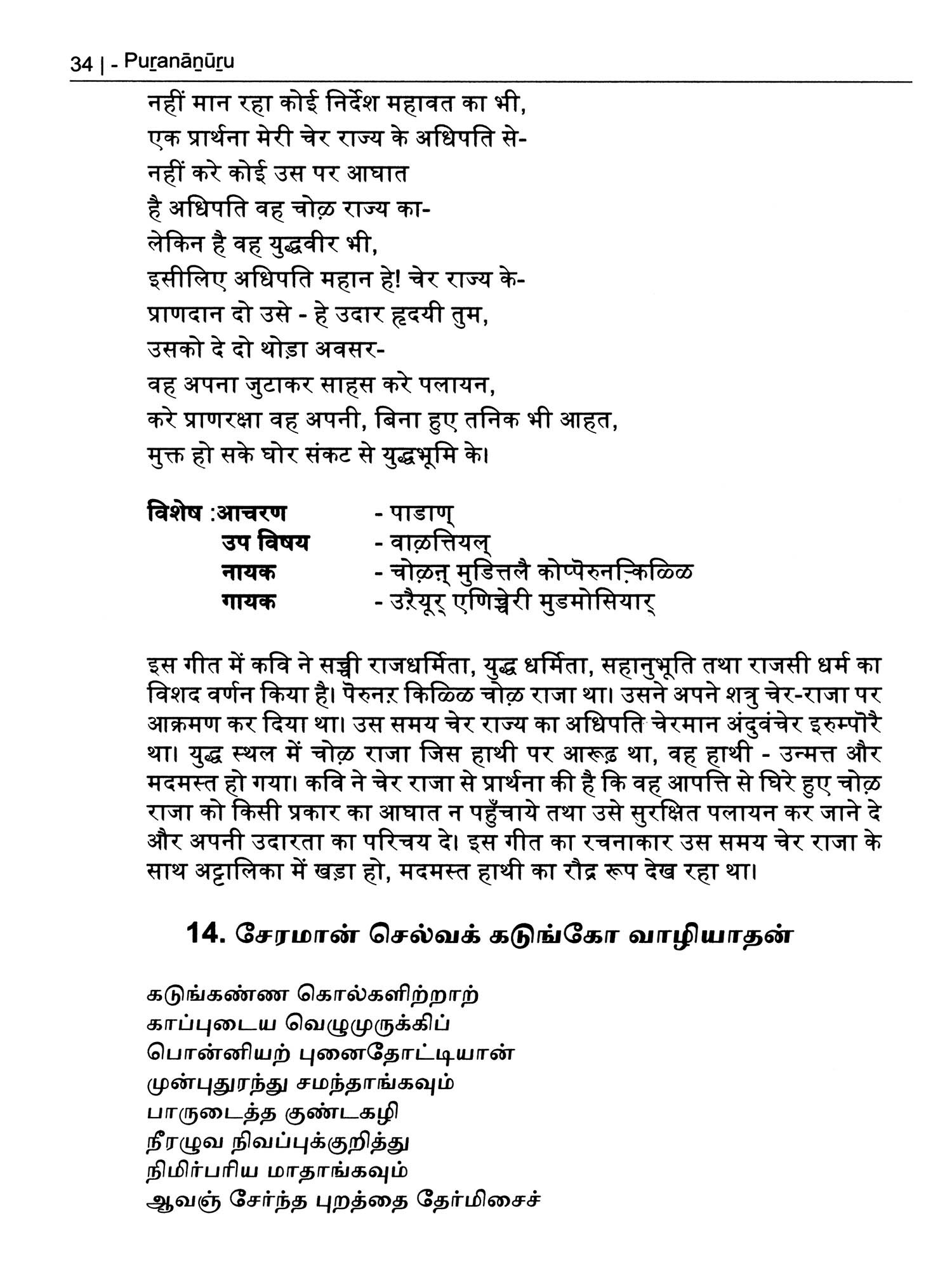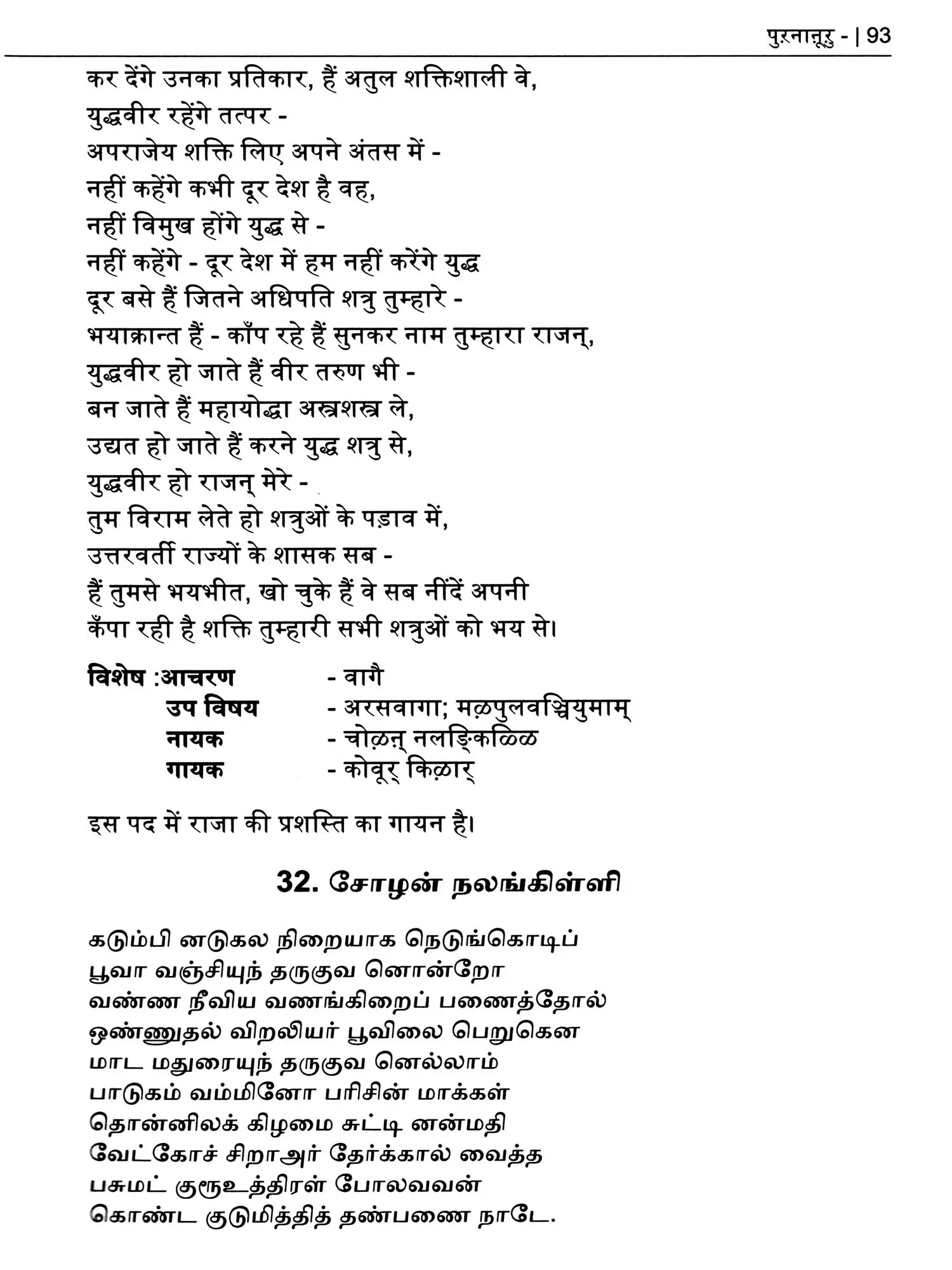 पुऱनाऩूऱु (புறநானூறு)-Purananuru: Ancient Tamil Poets (Original Text, Devanagari Transliteration, and Verse Translation)