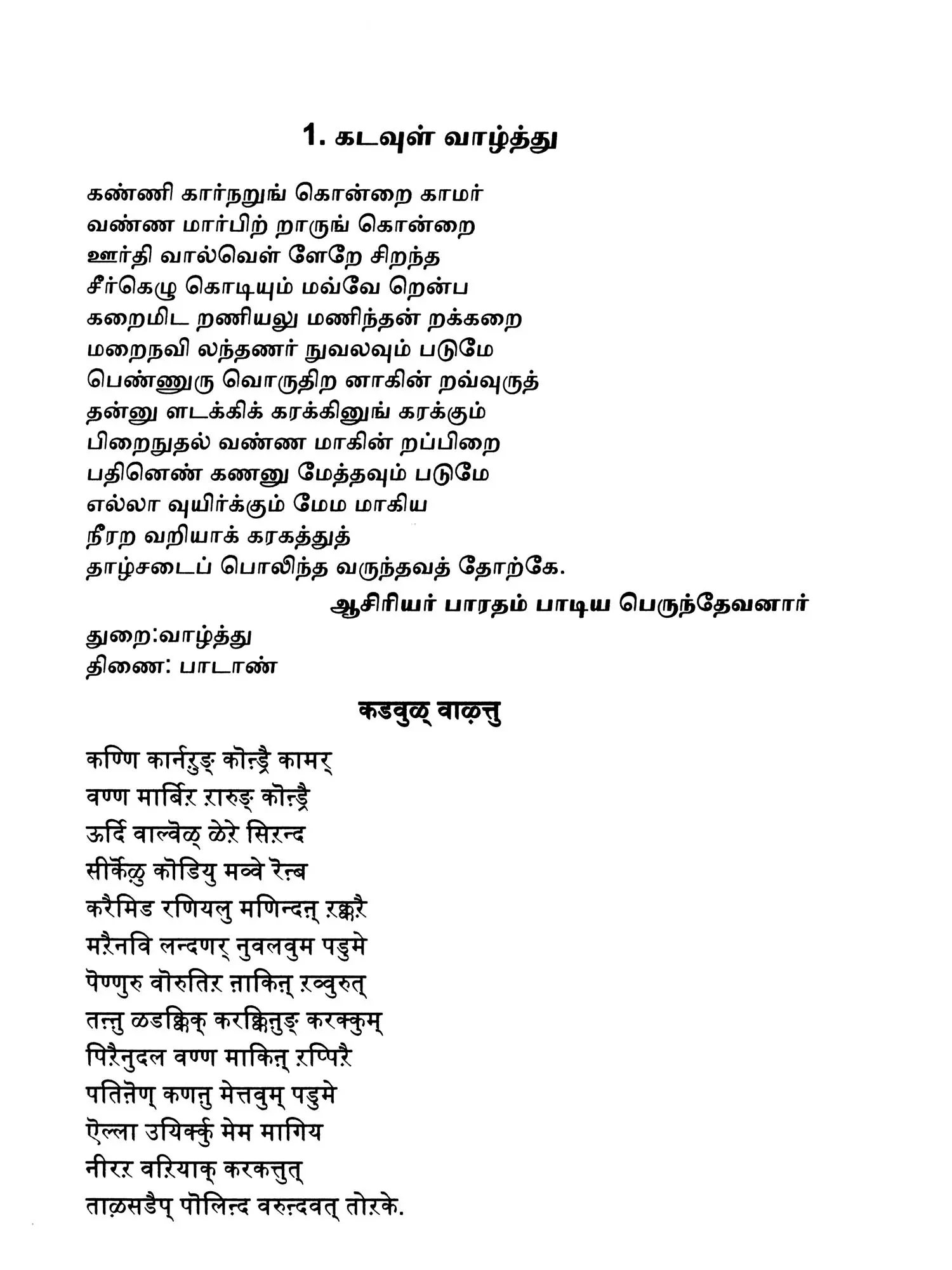 Language: Tamil Text with Devanagari Transliteration and Hindi Translation