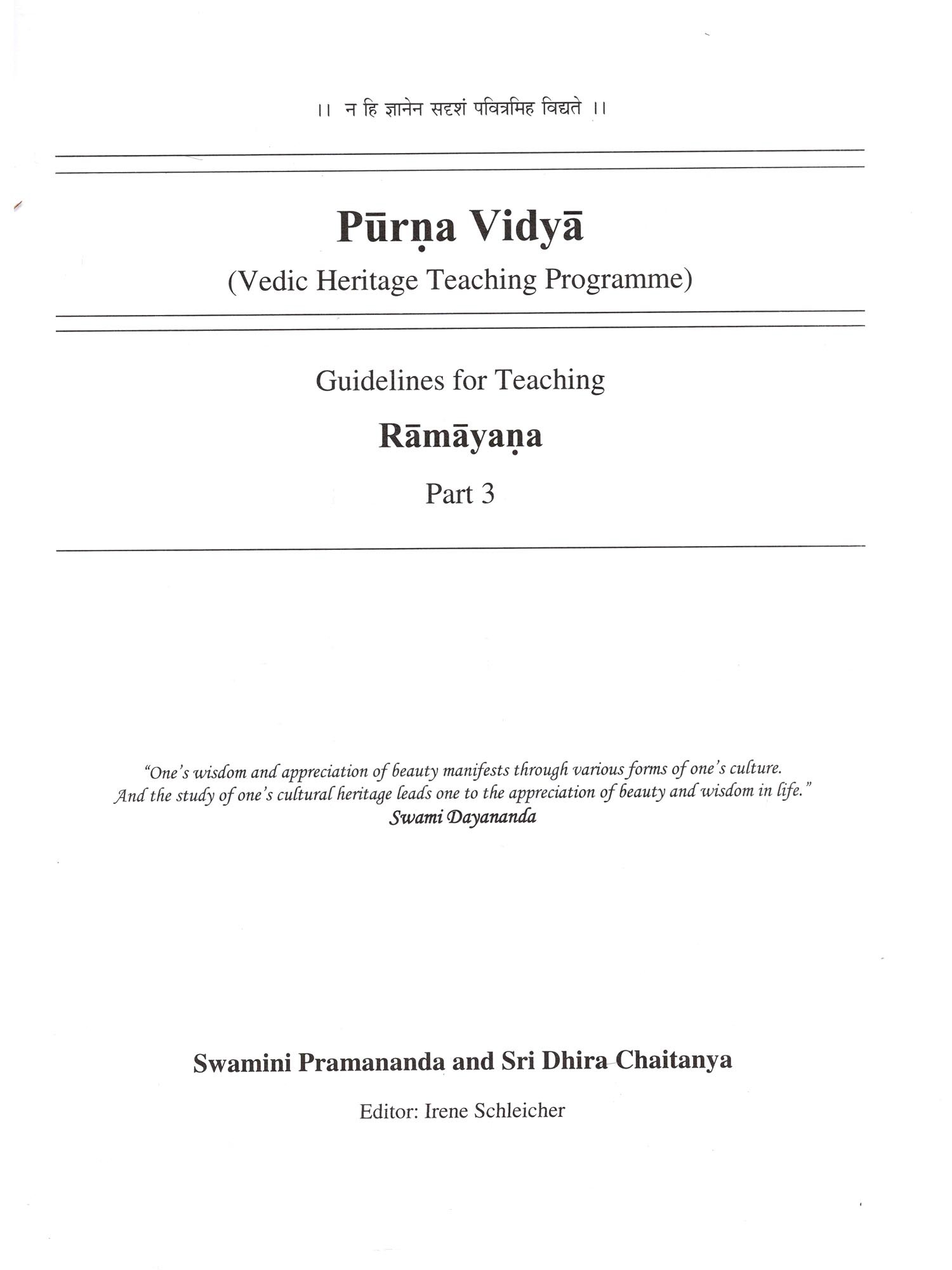 Purna Vidya- Guidelines for Teaching Ramayana Part- 3 (Vedic Heritage Teaching Programme)