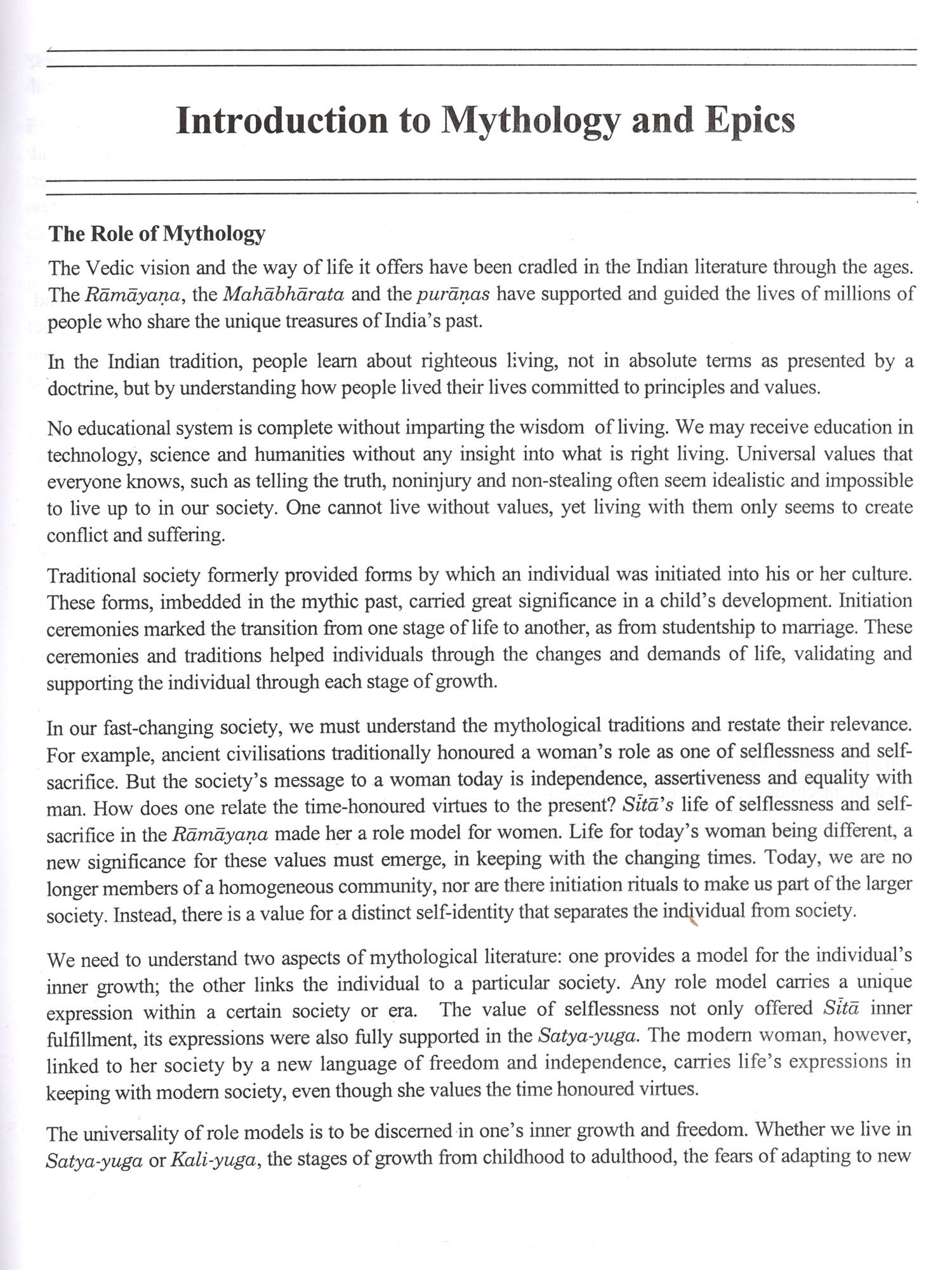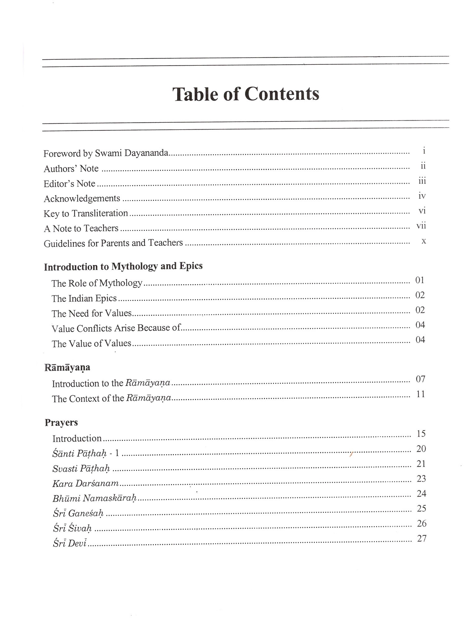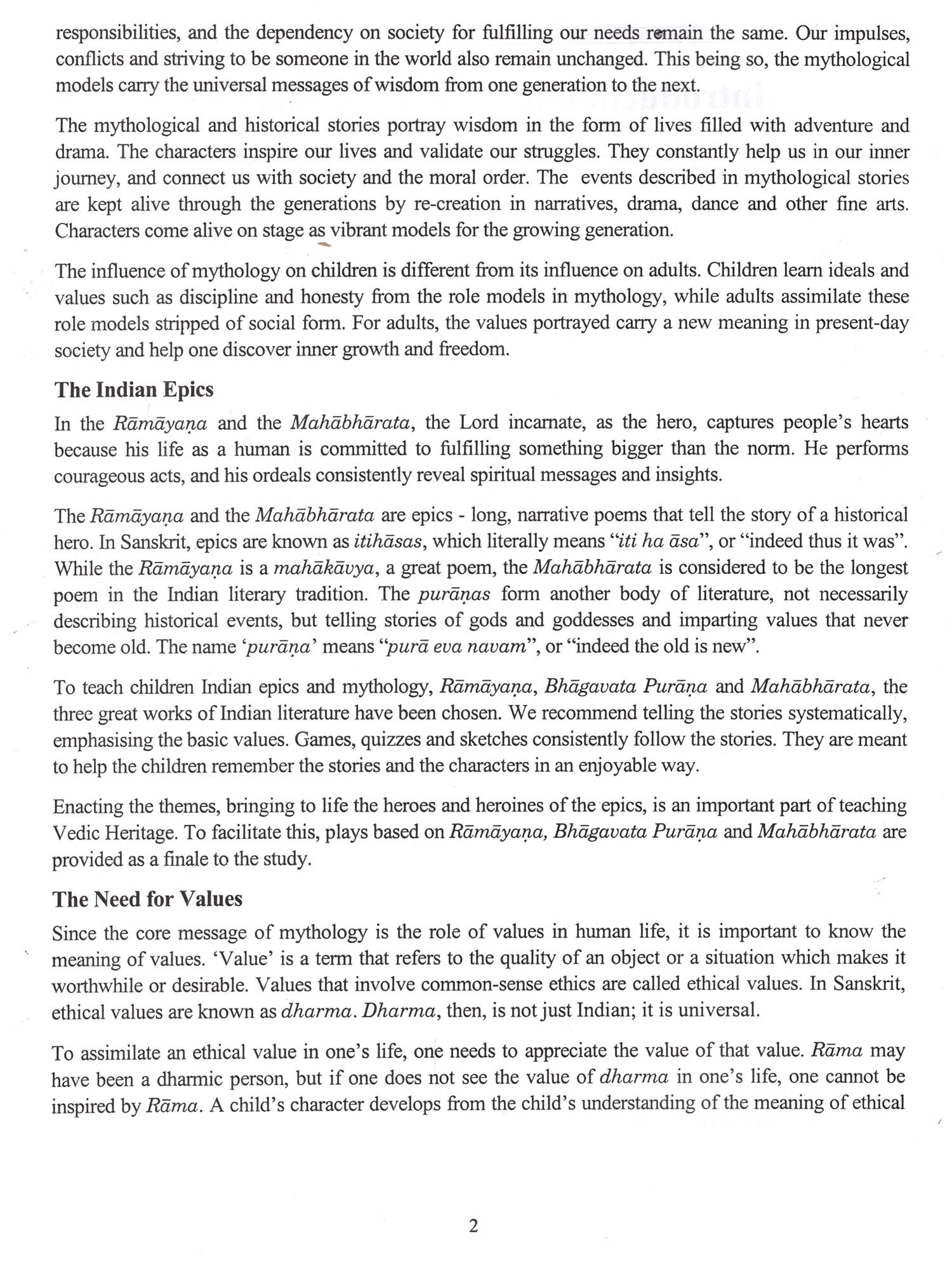 Keeping this in view, we have evolved a course in Vedic Heritage for children of different age groups. Drawing from ten years of experience in teaching this heritage, Sunita Ramaswamy (Swamini Pramananda Saraswati) and Sundar Ramaswamy (Sri Dhira Chaitanya), my students, with the help of other students, have put together the Vedic Heritage Teaching Programme. I hope the educational institutions in India and elsewhere, will make use of these books to conduct regular Vedic Heritage classes for children. Individual parents can also make use of these books to teach the children their heritage.