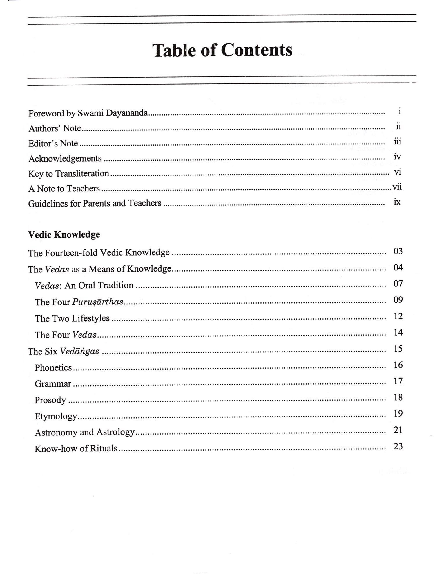 Keeping this in view, we have evolved a course in Vedic Heritage for children of different age groups. Drawing from ten years of experience in teaching this heritage, Sunita Ramaswamy (Swamini Pramananda Saraswati) and Sundar Ramaswamy (Sri Dhira Chaitanya), my students, with the help of other students, have put together the Vedic Heritage Teaching Programme. I hope the educational institutions in India and elsewhere, will make use of these books to conduct regular Vedic Heritage classes for children. Individual parents can also make use of these books to teach the children their heritage.