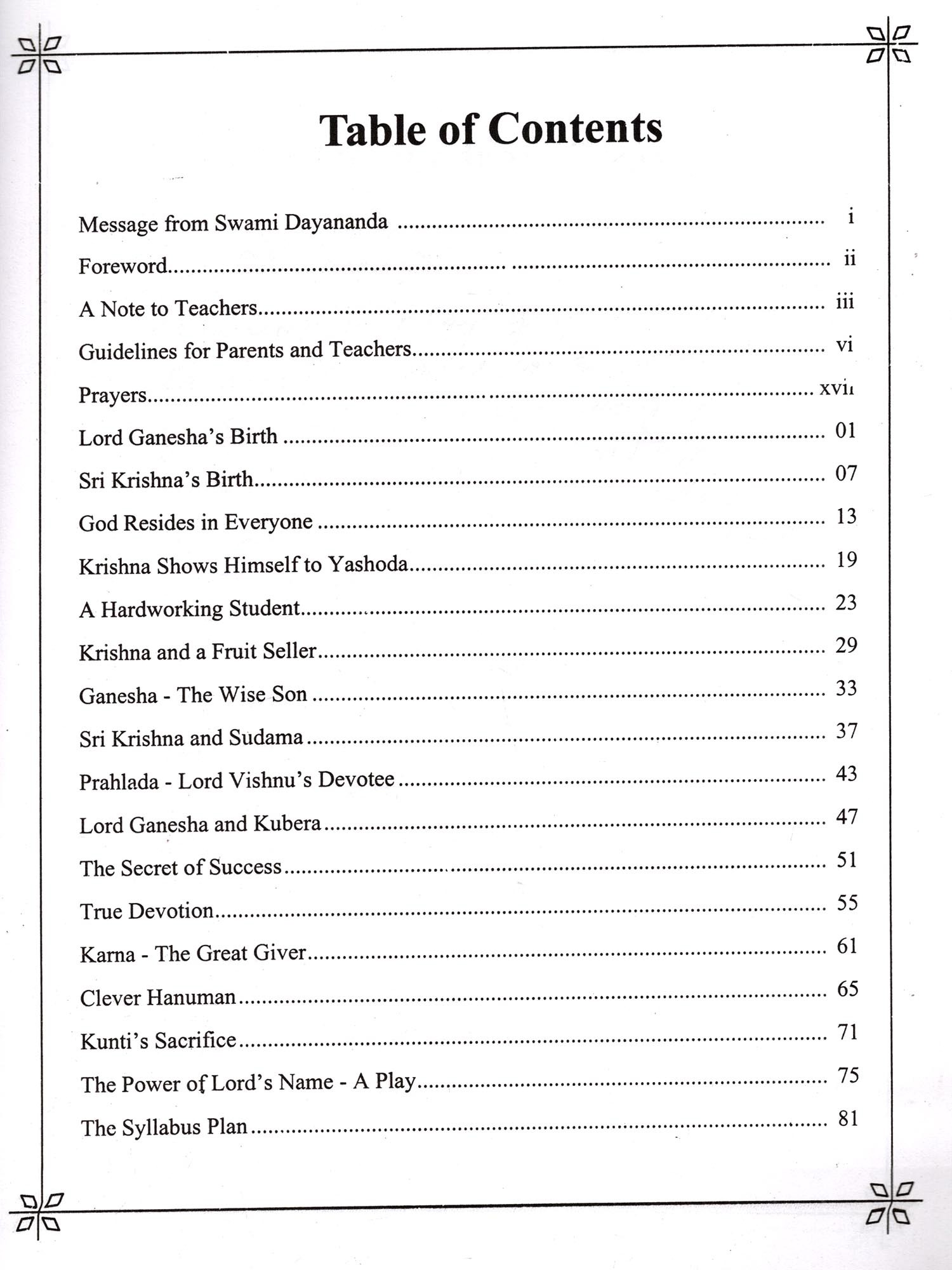 Keeping this in view, we have evolved a course in Vedic Heritage for children of different age groups. Drawing from ten years of experience in teaching this heritage, Sunita Ramaswamy (Swamini Pramananda Saraswati) and Sundar Ramaswamy (Sri Dhira Chaitanya), my students, with the help of other students, have put together the Vedic Heritage Teaching Programme. I hope the educational institutions in India and elsewhere, will make use of these books to conduct regular Vedic Heritage classes for children. Individual parents can also make use of these books to teach the children their heritage.